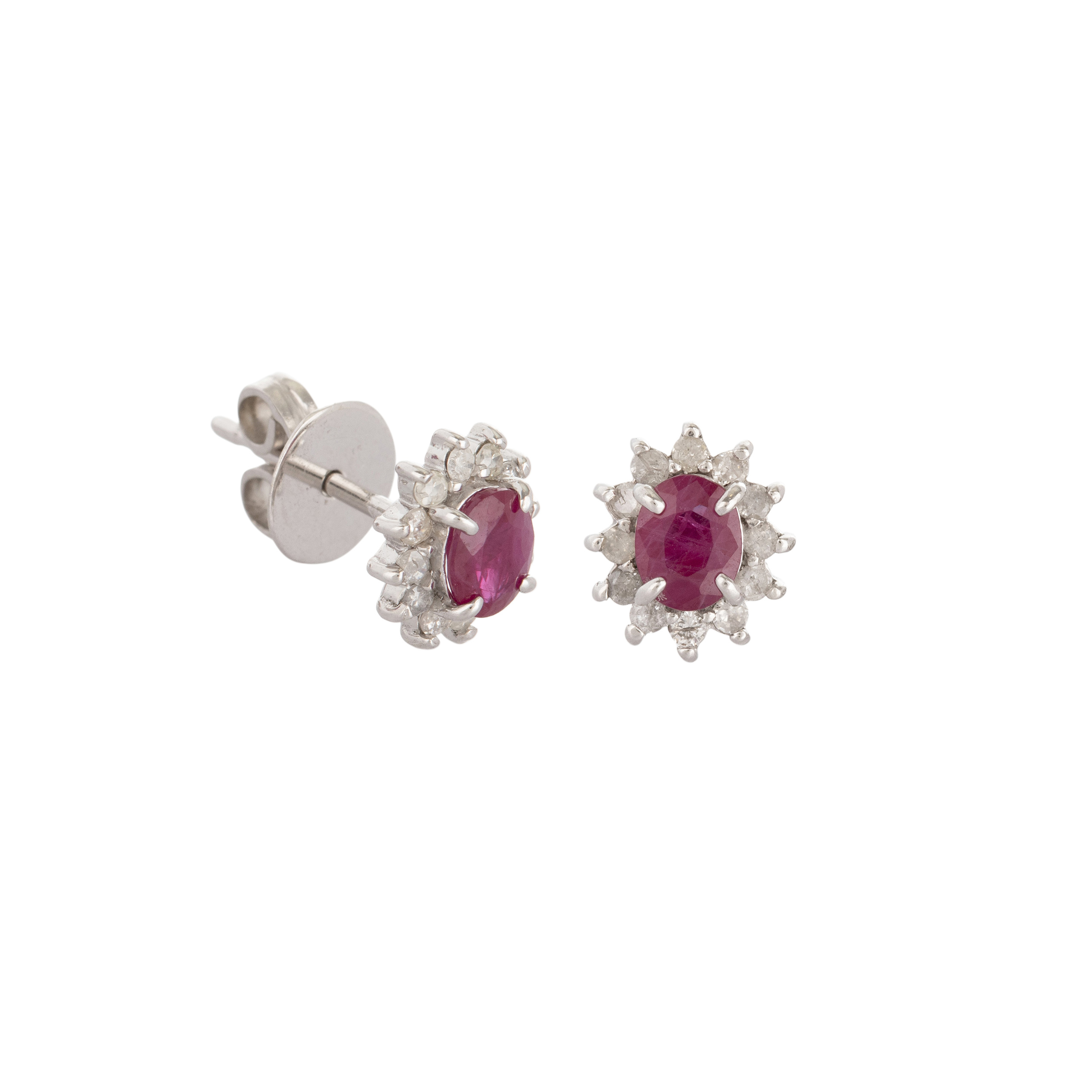 Brinco de ouro branco 14k com rubis e 0,19ct de brilhantes. Medida 0,8cm.