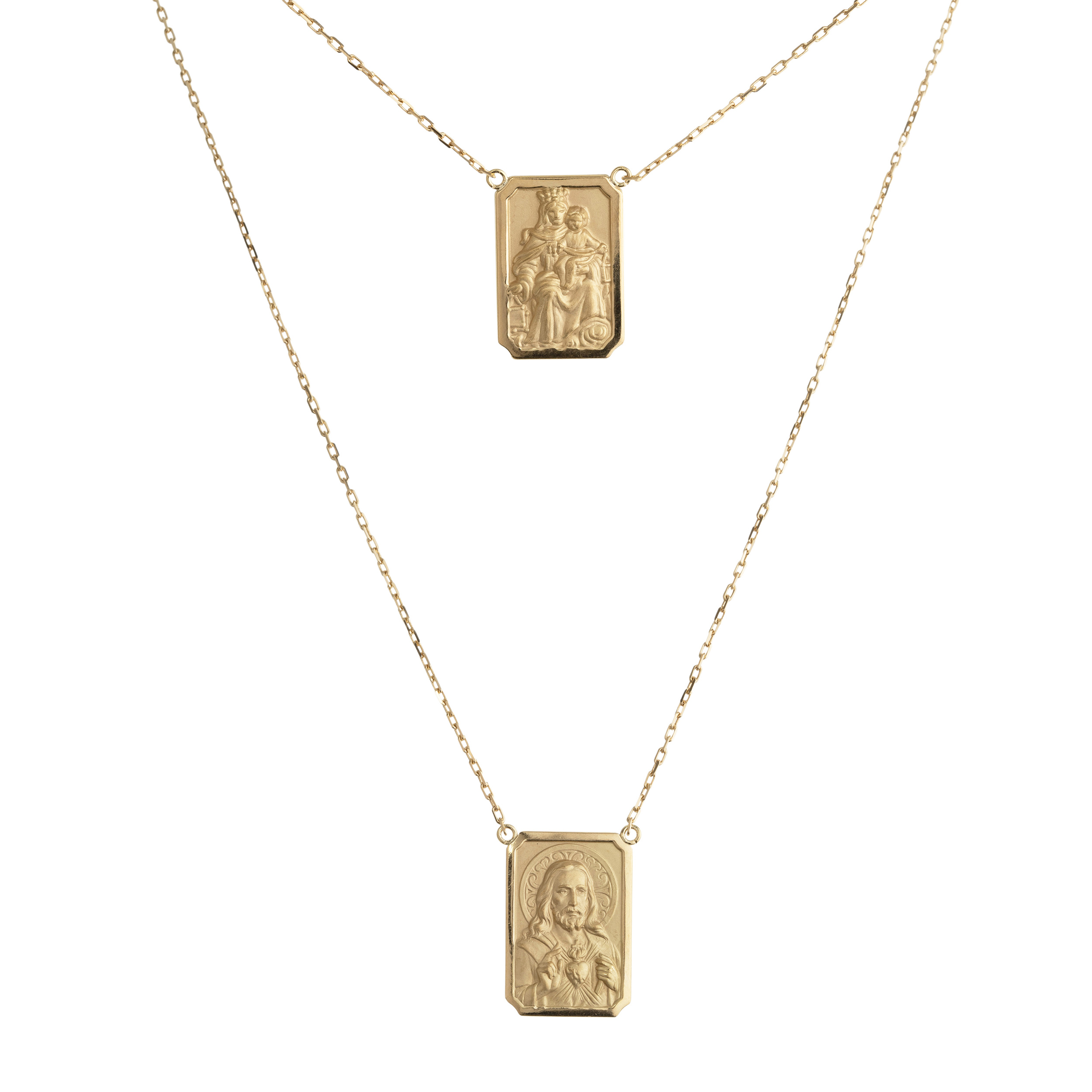 Escapulário de ouro amarelo com 11,0g. Medidas 2,5cm/72cm.