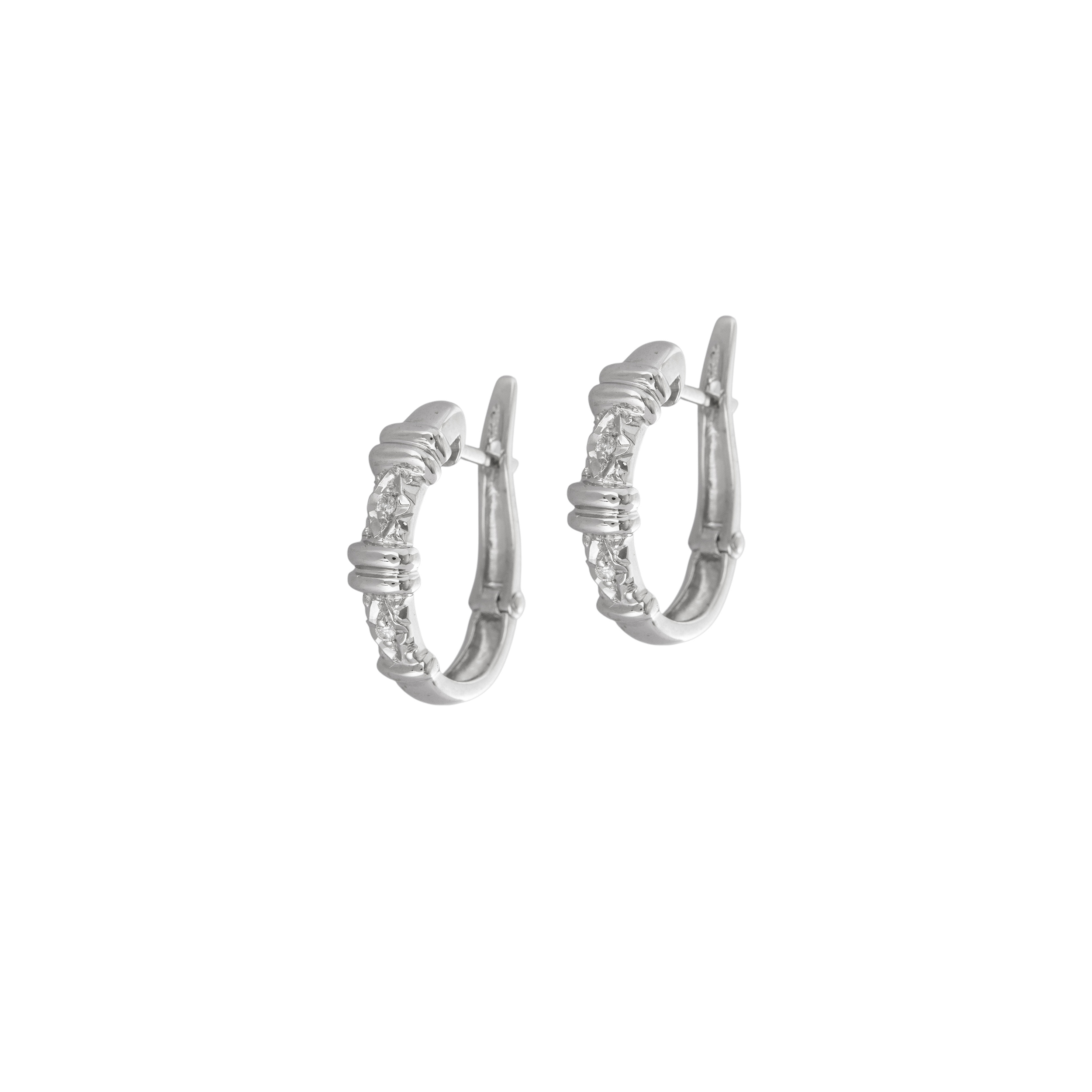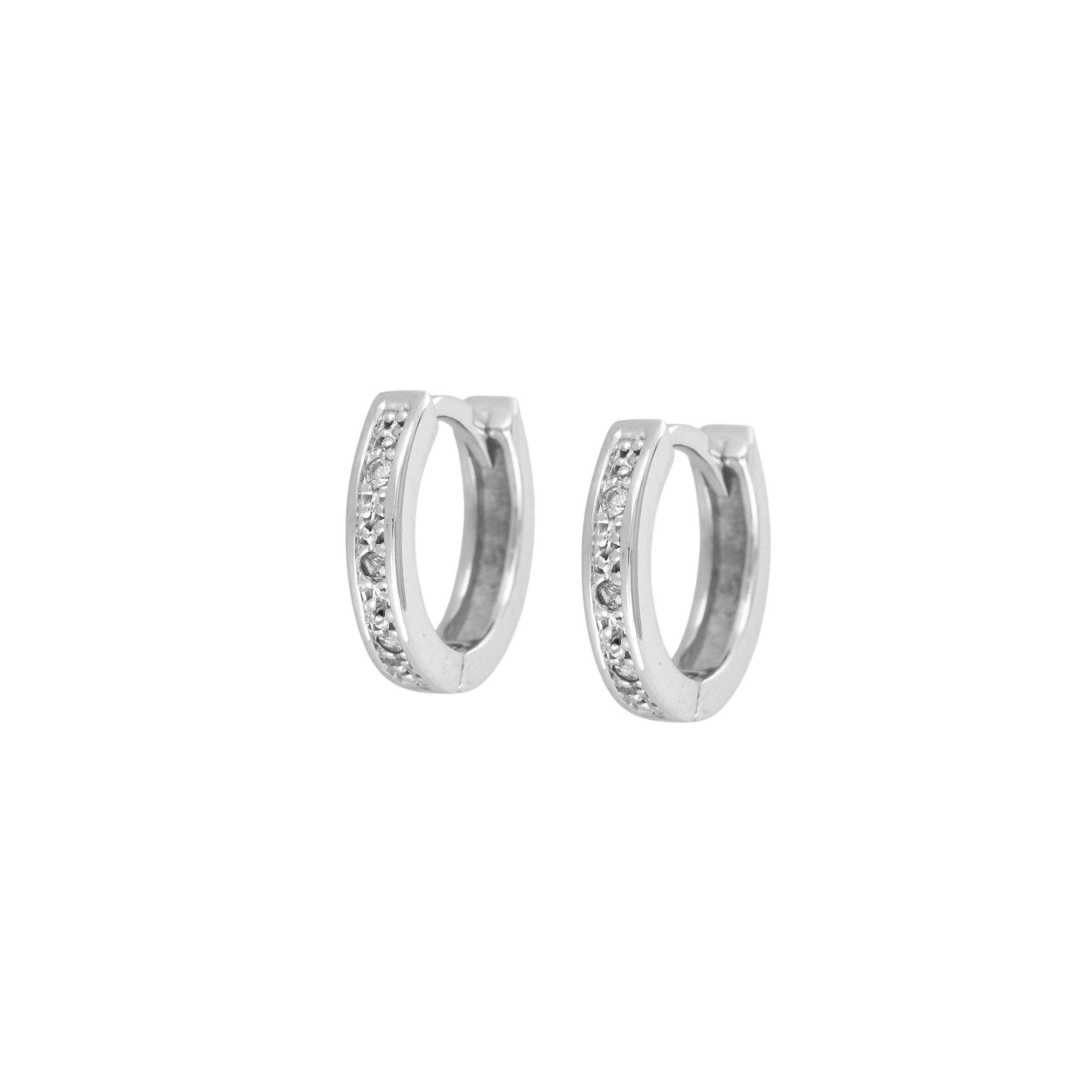 Brinco de ouro branco com 0,02ct de brilhantes. Medida 1cm.