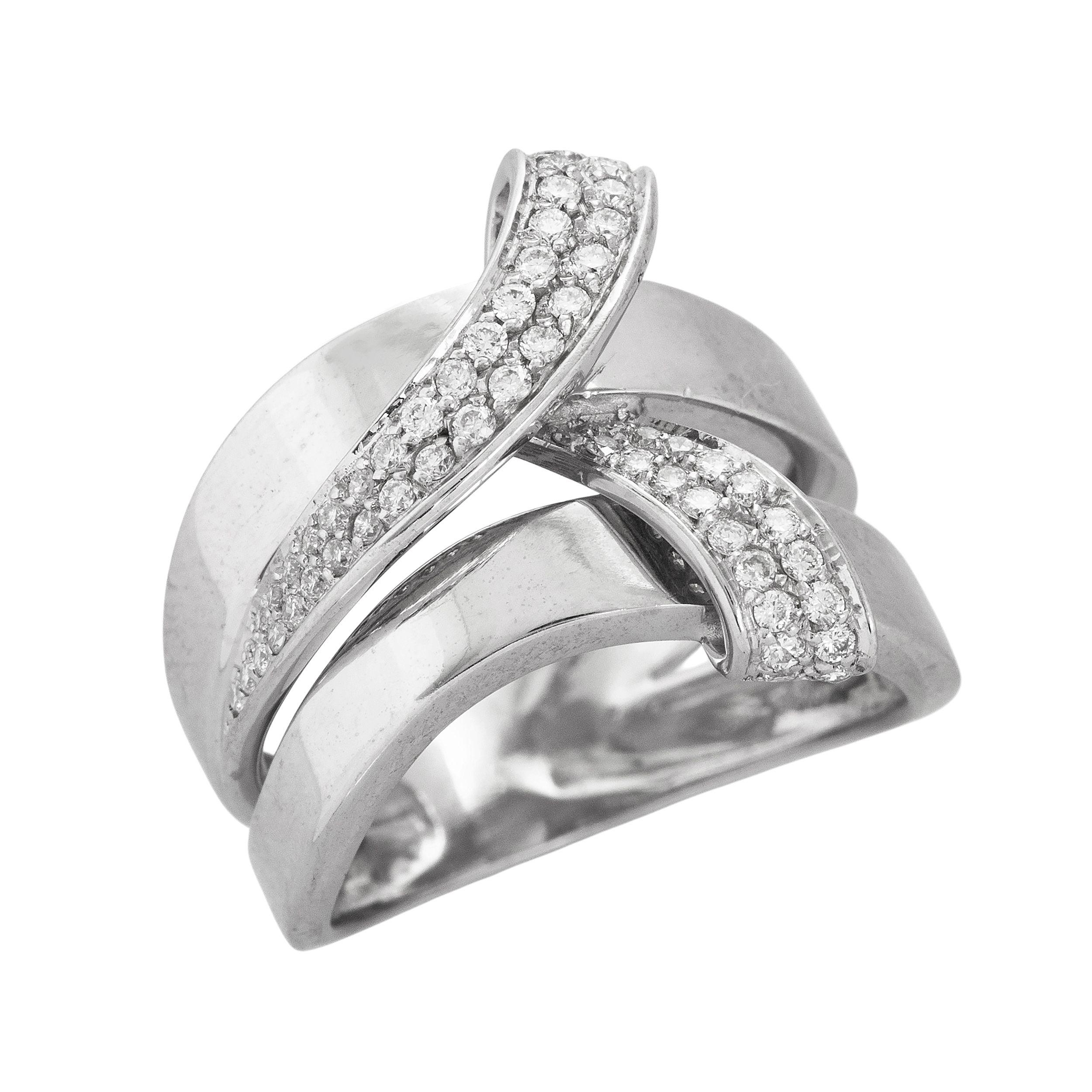 Anel de ouro branco com 0,60ct de brilhantes e 6,3g. Medida 16.