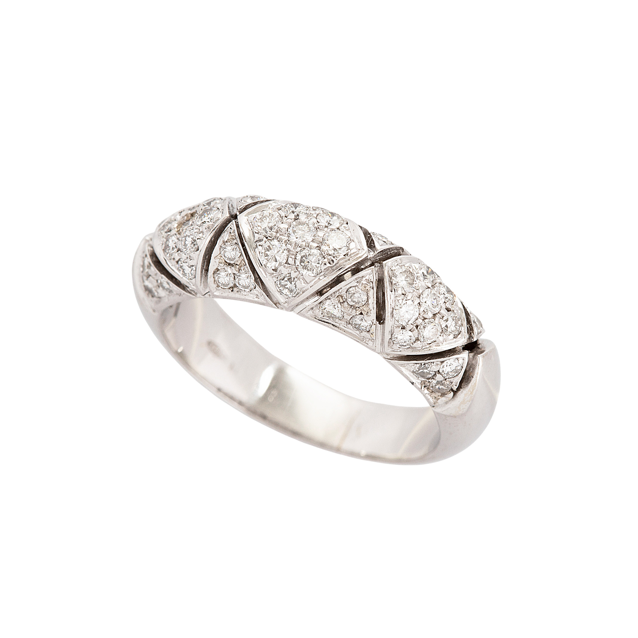 Anel de ouro branco com 0,41ct de brilhantes e 6,9g. Medida 14.