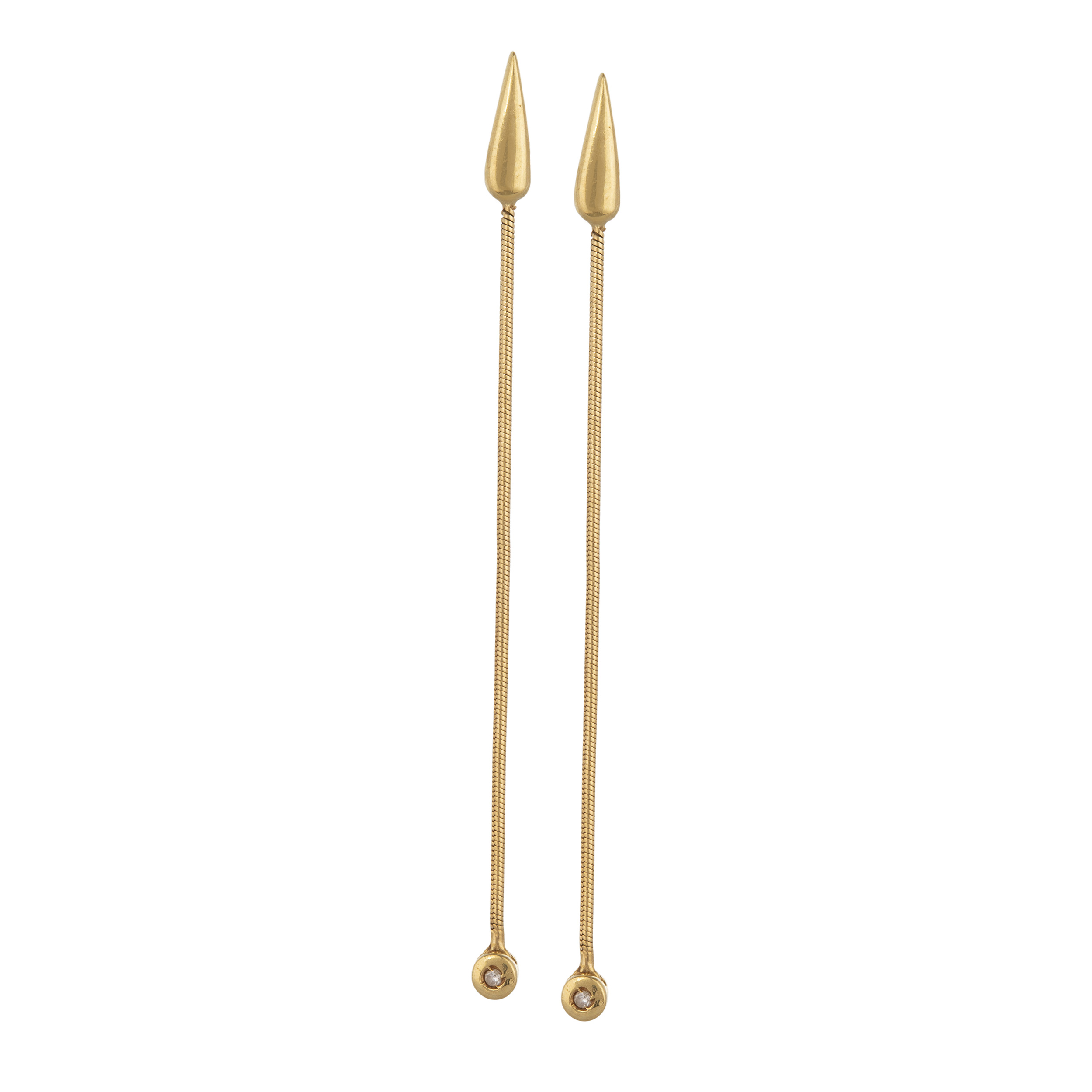 Brinco de ouro amarelo com 0,01ct de brilhantes. Medida 6,5cm.