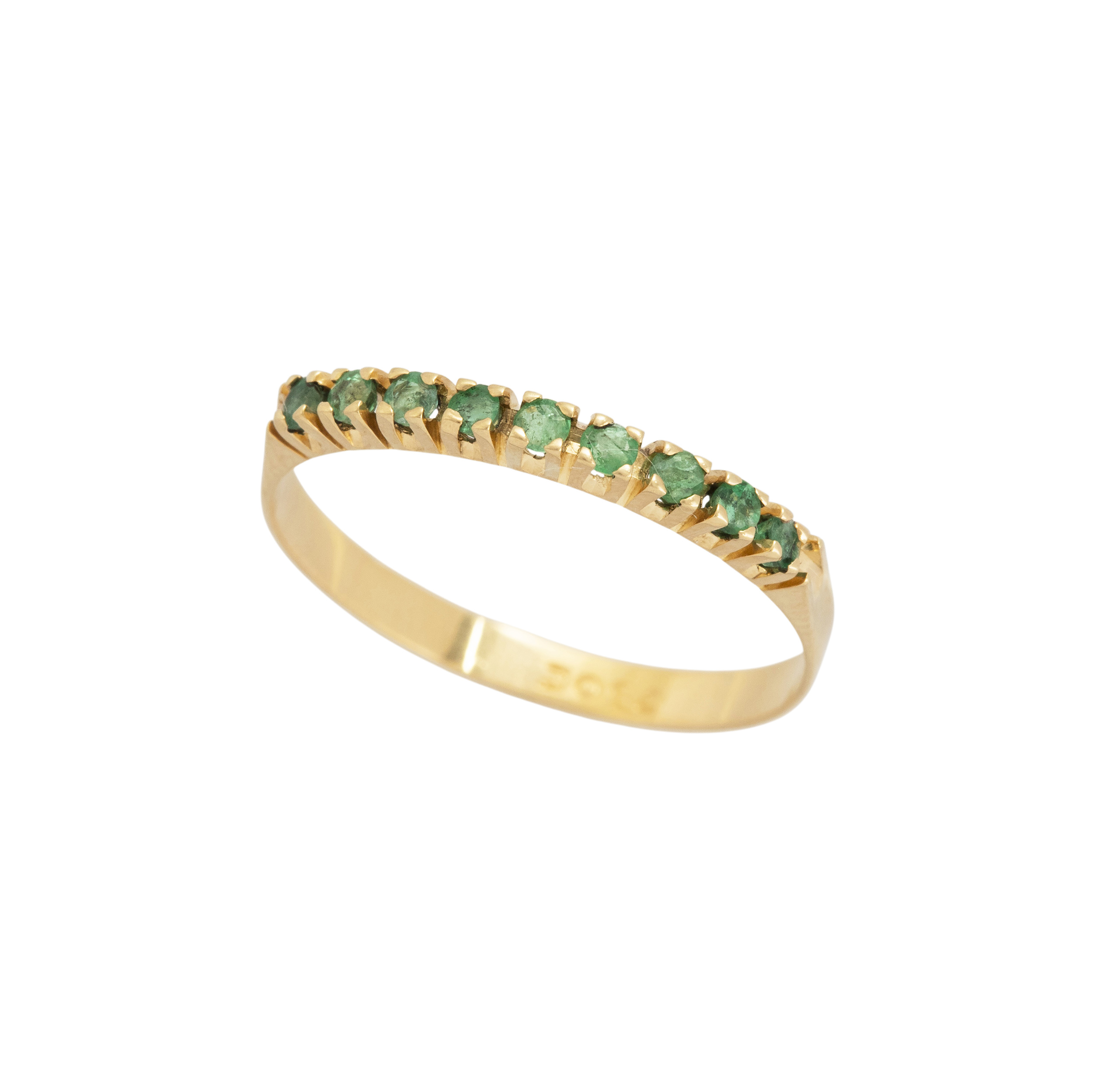 Meia-aliança de ouro amarelo com esmeraldas. Medida 16.