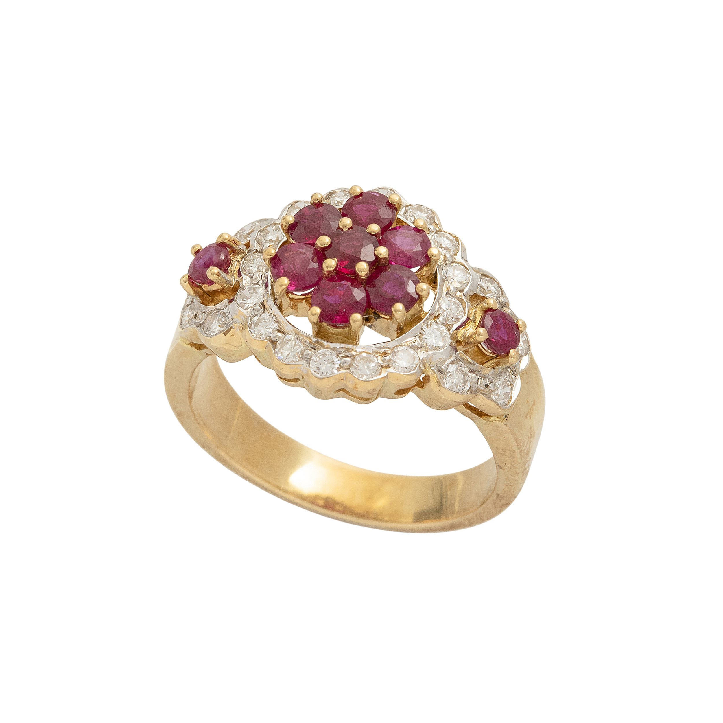 Anel de ouro amarelo com rubis, 0,60ct de brilhantes e 7,0g. Medida 16.