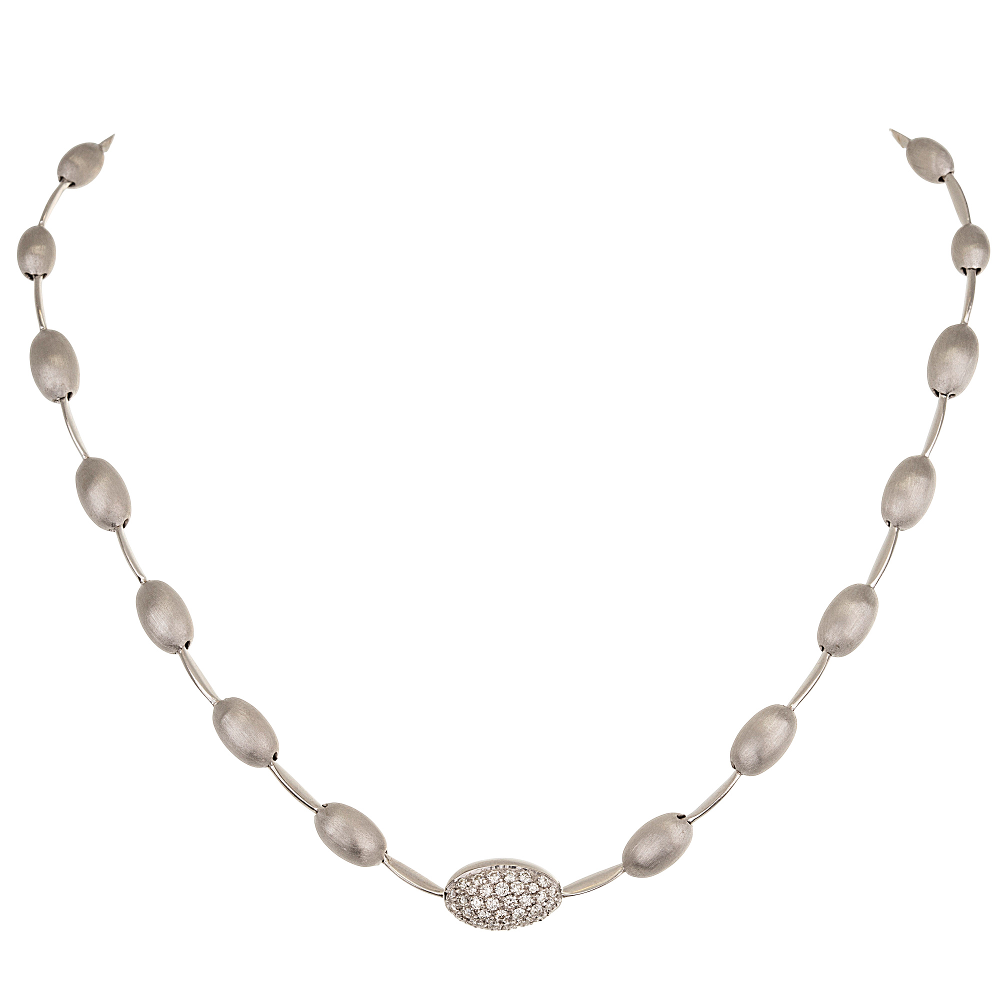 Gargantilha de ouro branco com 1,10ct de brilhantes e 24,5g. Medida 39cm.