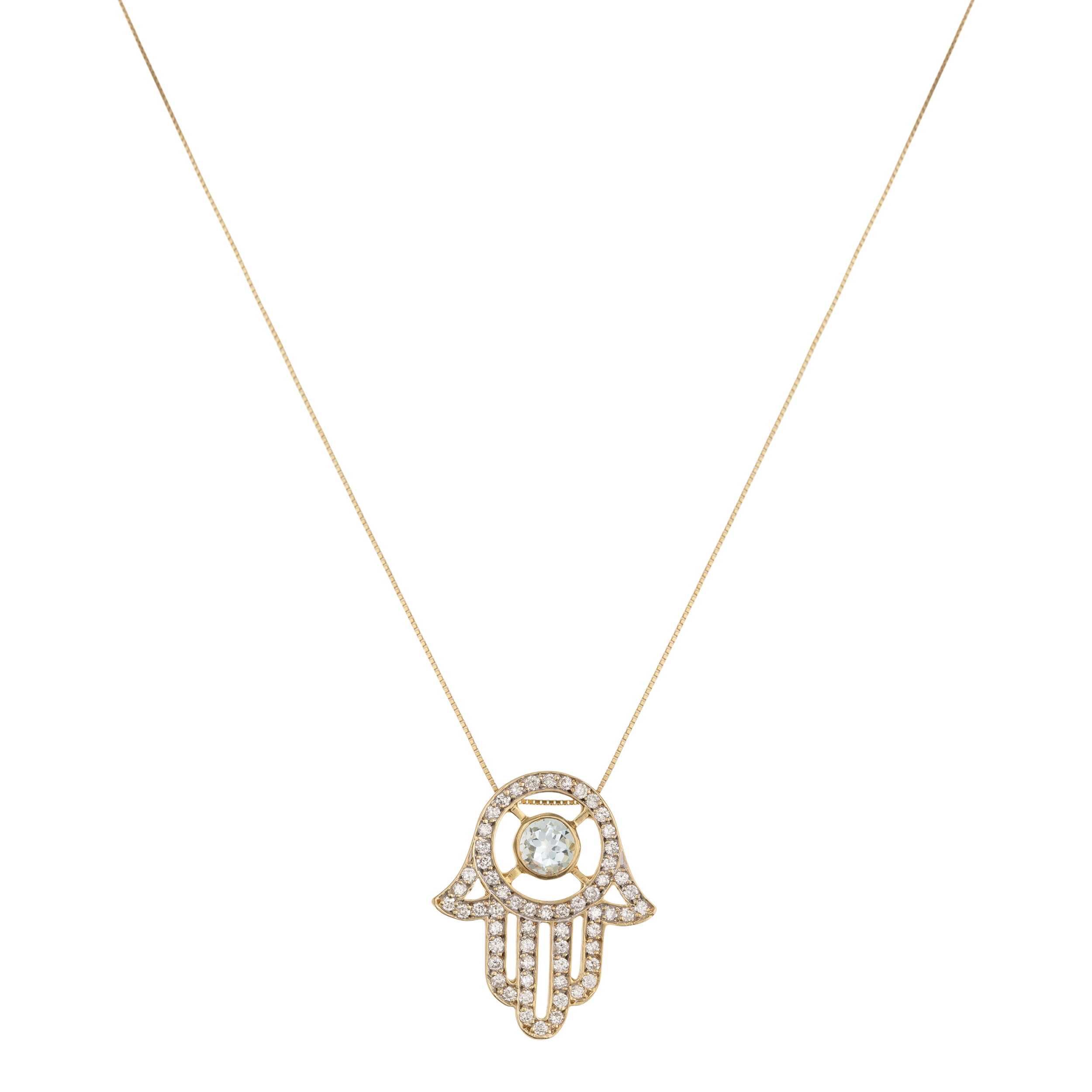 Corrente com pingente de ouro amarelo, topázio e 0,50ct de brilhantes. Medidas 2,4cm/48cm.