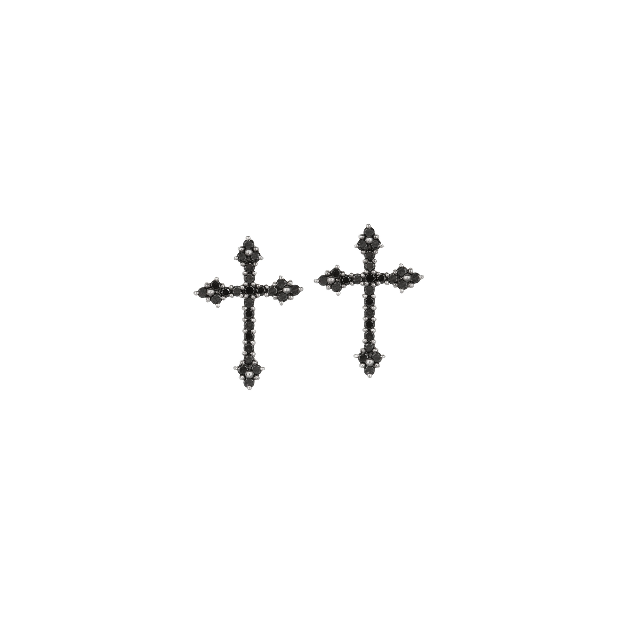 Brinco de ouro branco com 0,60ct de brilhantes negros. Medida 1,8cm.