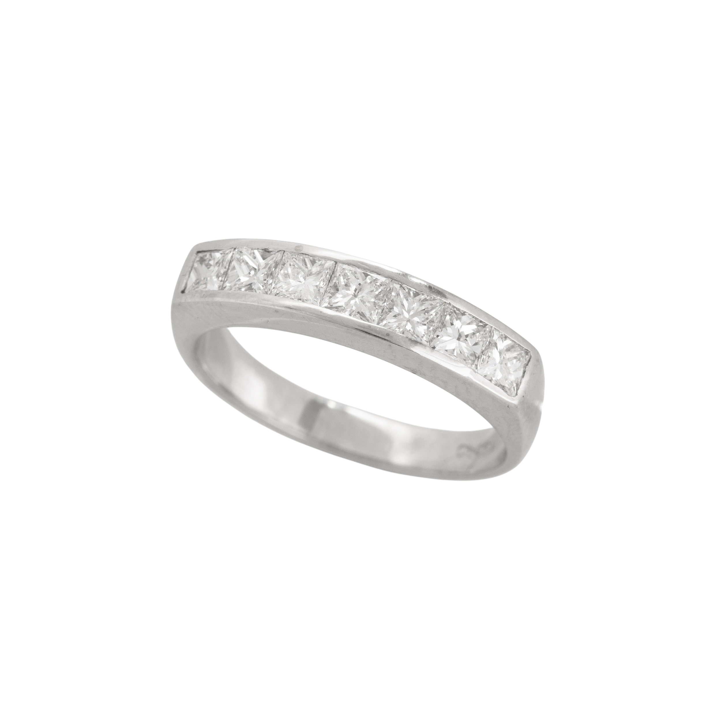 Meia-aliança de ouro branco com 0,70ct de diamantes lapidação princess G/VVS. Medida 15.