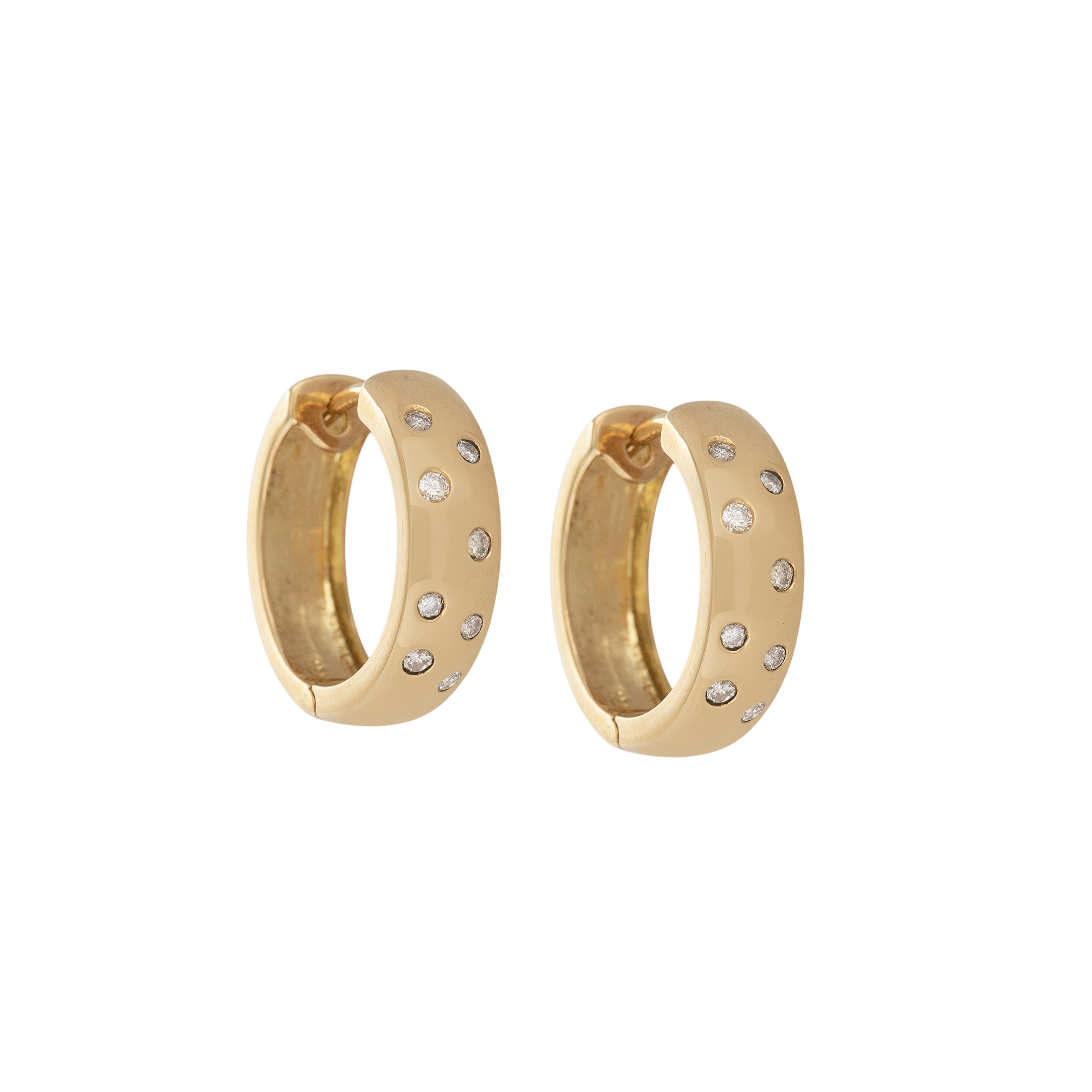 Brinco de ouro amarelo com 0,24ct de brilhantes e 6,8g. Medida 1,6cm.