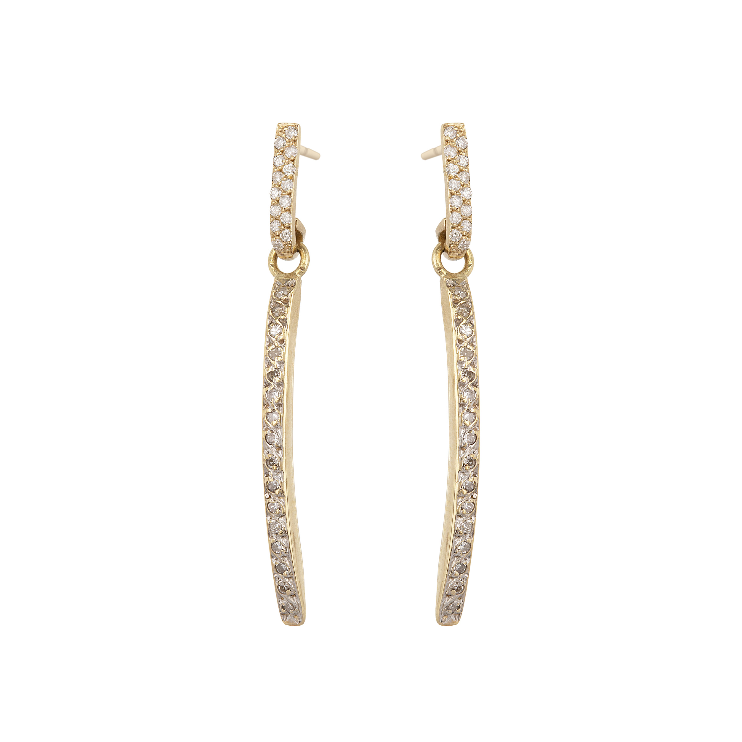 Brinco de ouro amarelo com 0,30ct de brilhantes. Medida 4,2cm.