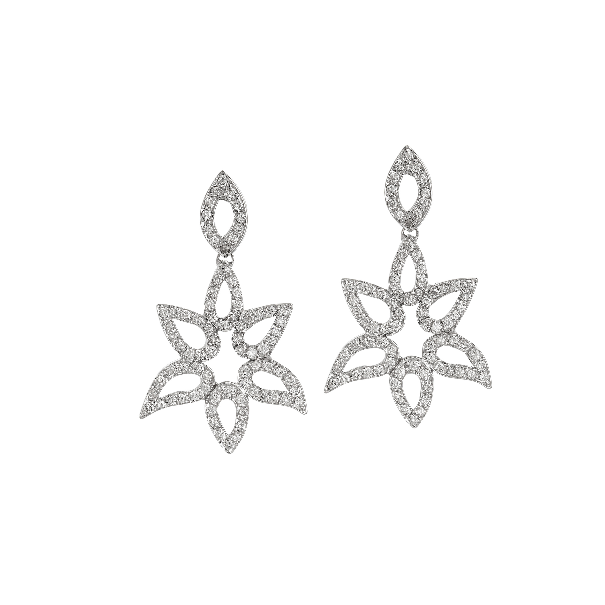 Brinco de ouro branco com 1,60ct de brilhantes e 13,1g. Medida 4,3cm.