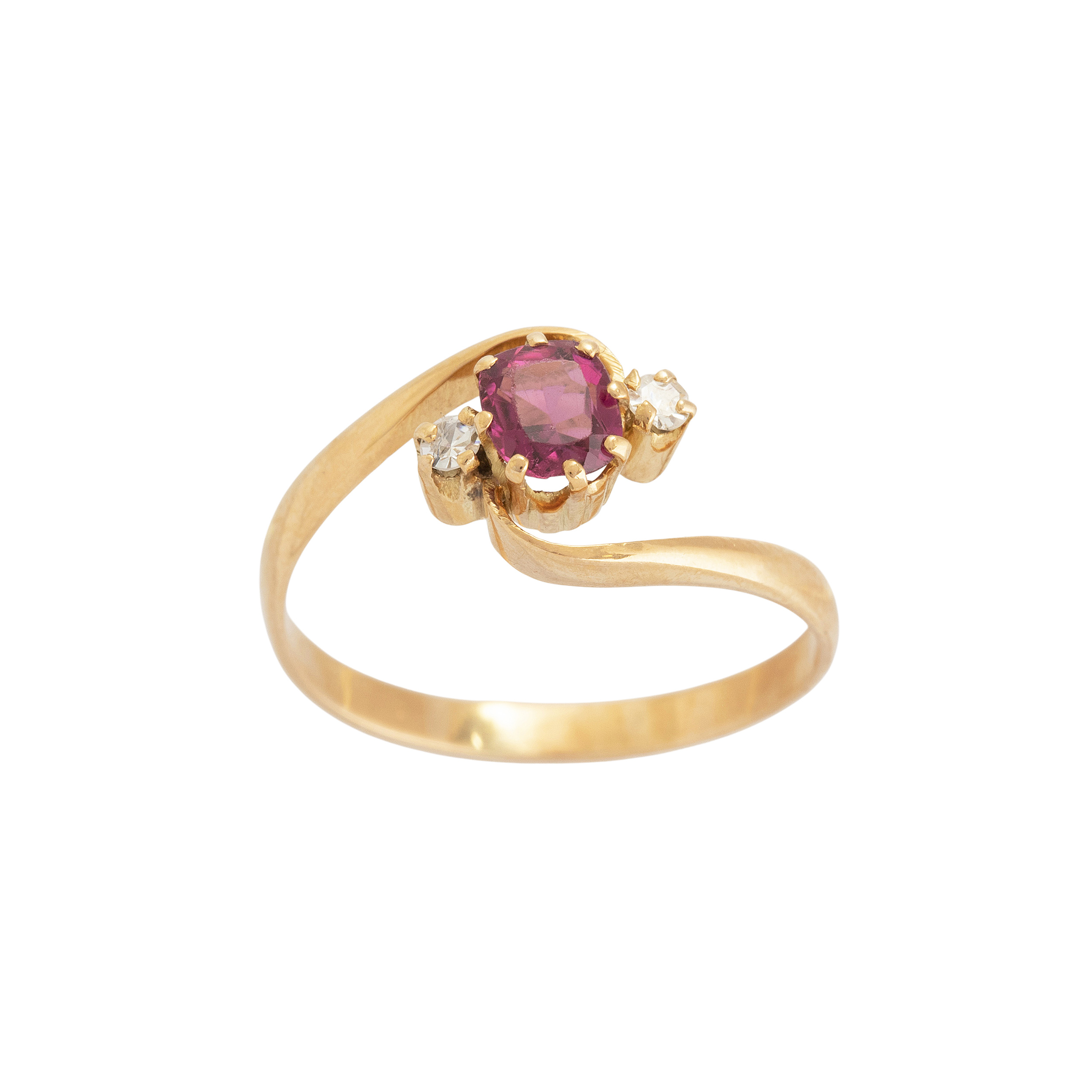 Anel de ouro amarelo com turmalina rosa e 0,08ct de brilhantes. Medida 19.