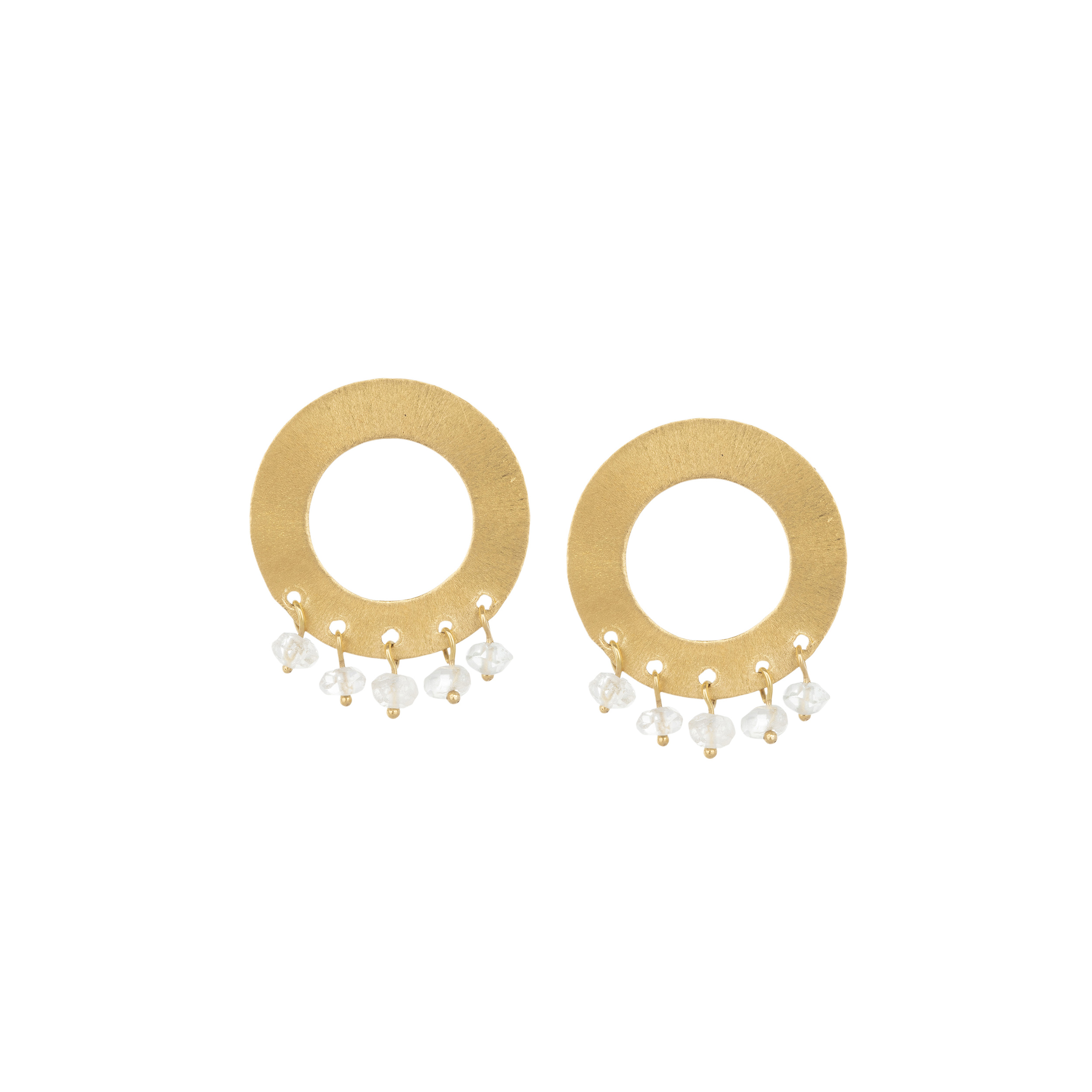 Brinco de ouro amarelo com quartzos. Medida 2,3cm.