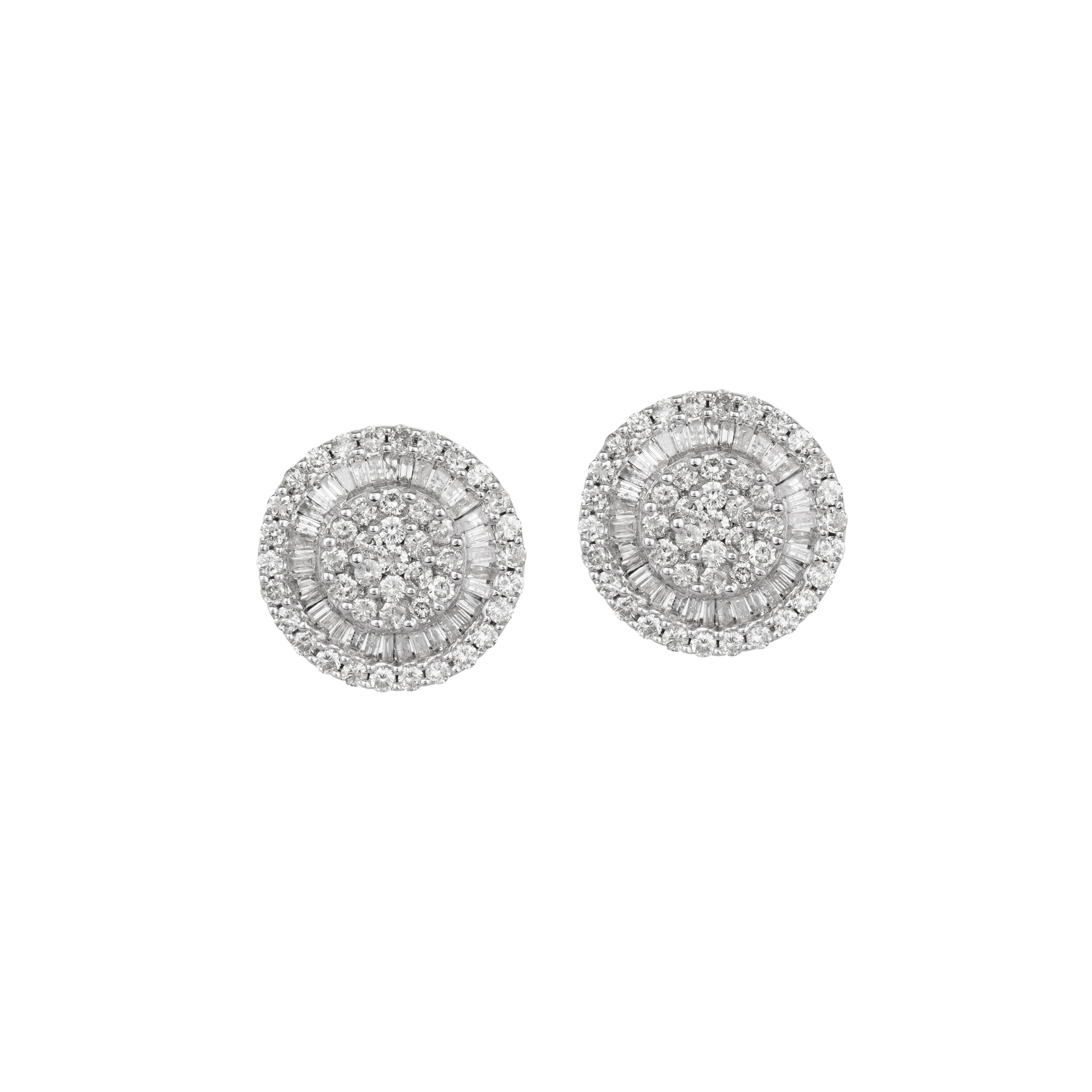 Brinco de ouro branco com 2,00ct de diamantes e 6,0g. Medida 1,5cm.