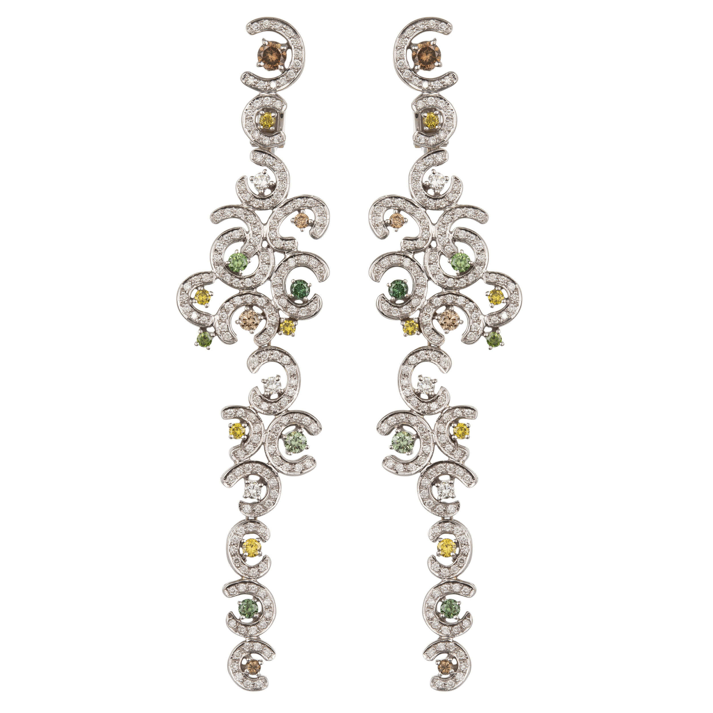 Brinco de ouro branco com 2,26ct de brilhantes brancos H-I/SI, 1,94ct de brilhantes tratados e 25,1g. Medida 9,1cm.