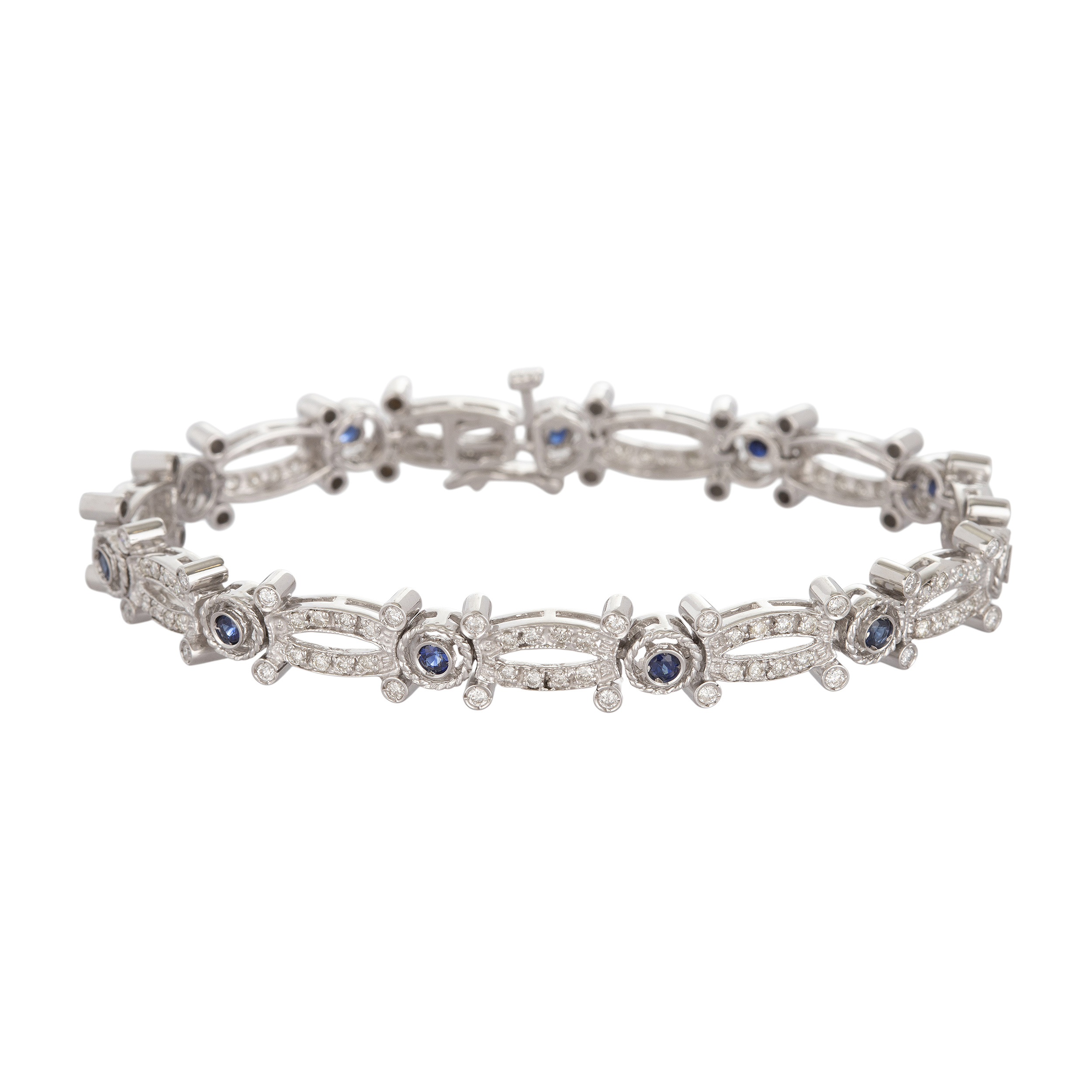 Pulseira de ouro branco com 0,55ct de safiras, 1,72ct de brilhantes e 19,2g. Medida 18cm.