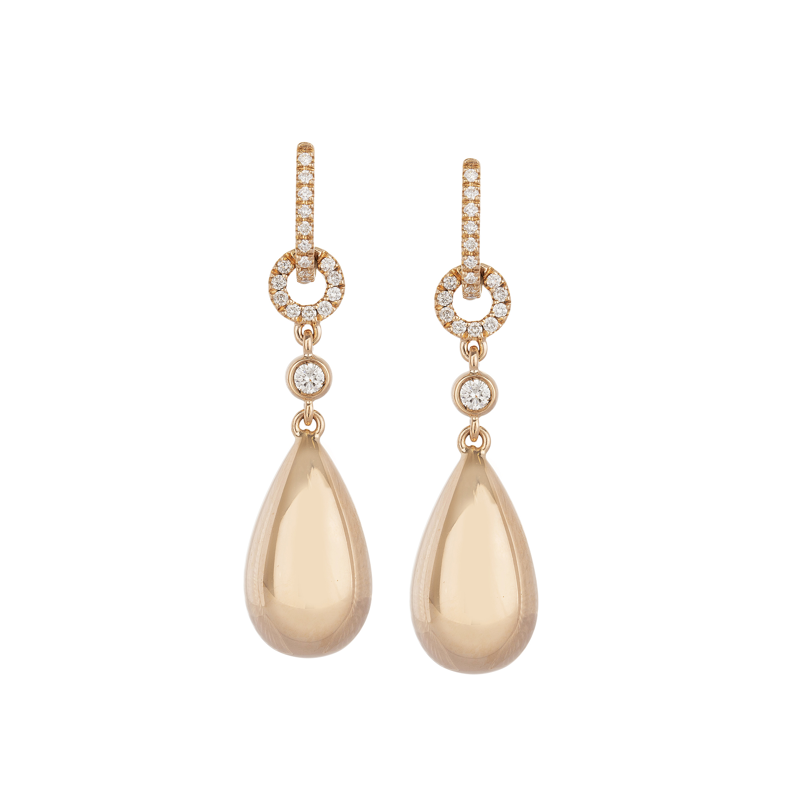 Brinco de ouro branco e rosé com 0,74ct de brilhantes e 20,0g. Medida 5,3cm.