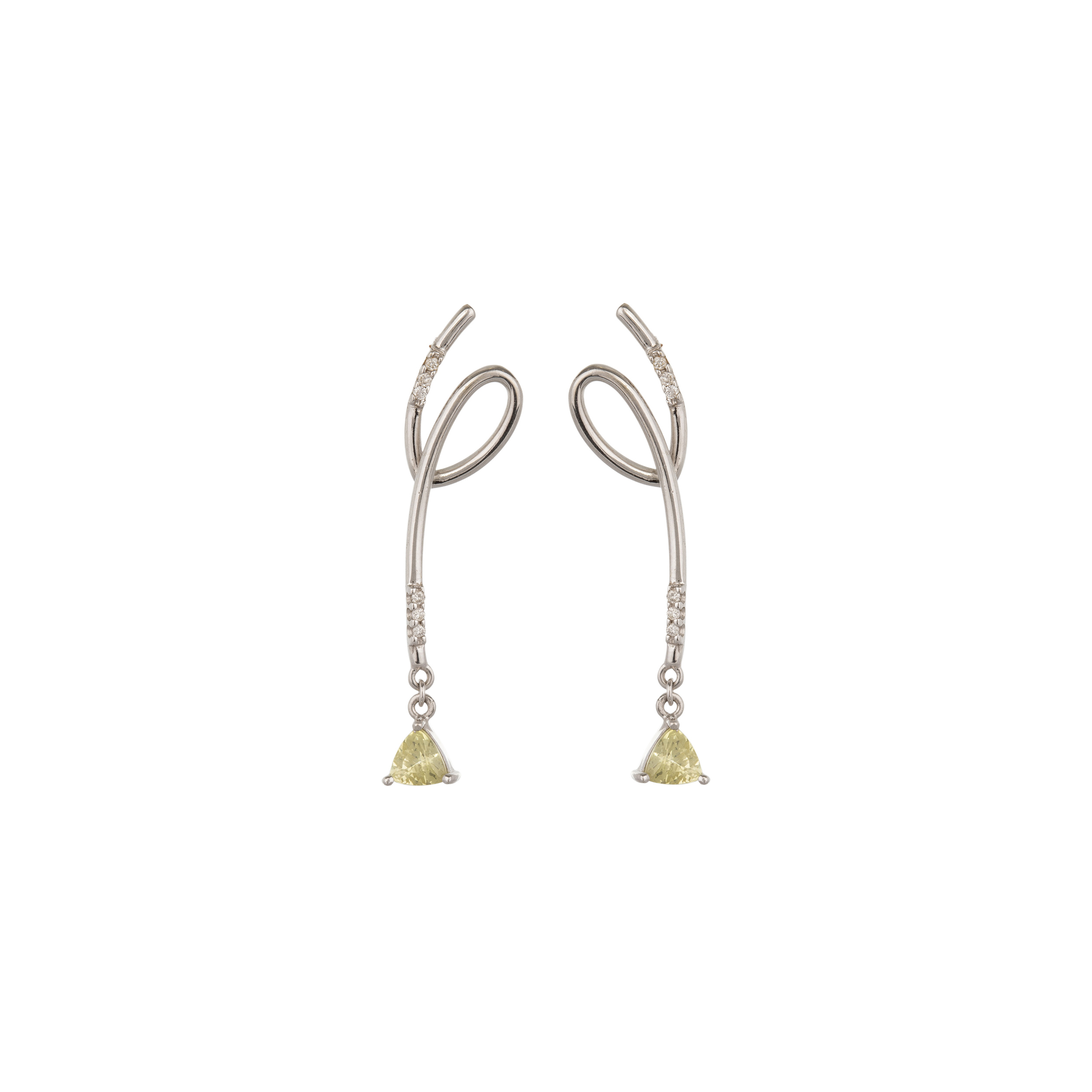 Brinco de ouro branco com quartzos e 0,08ct de brilhantes. Medida 4,1cm.