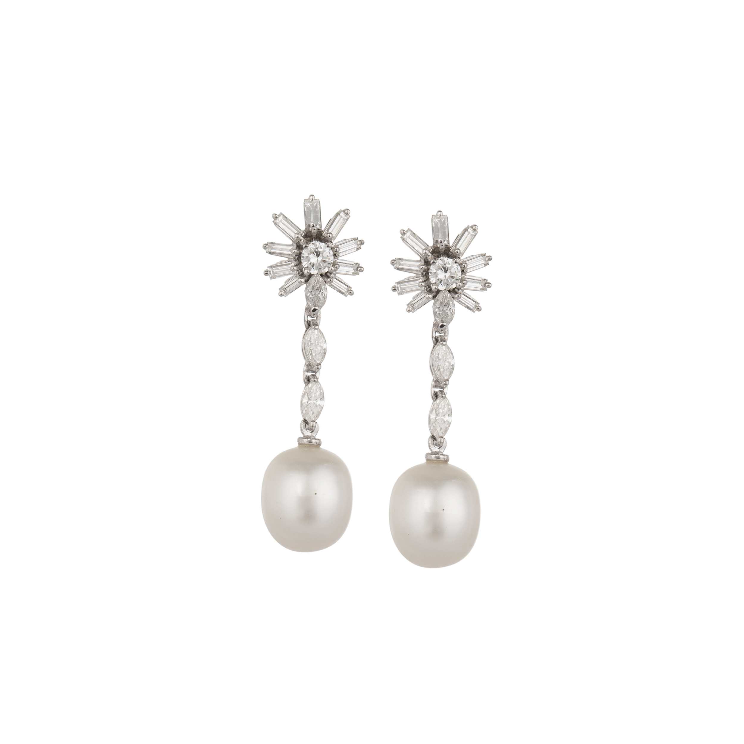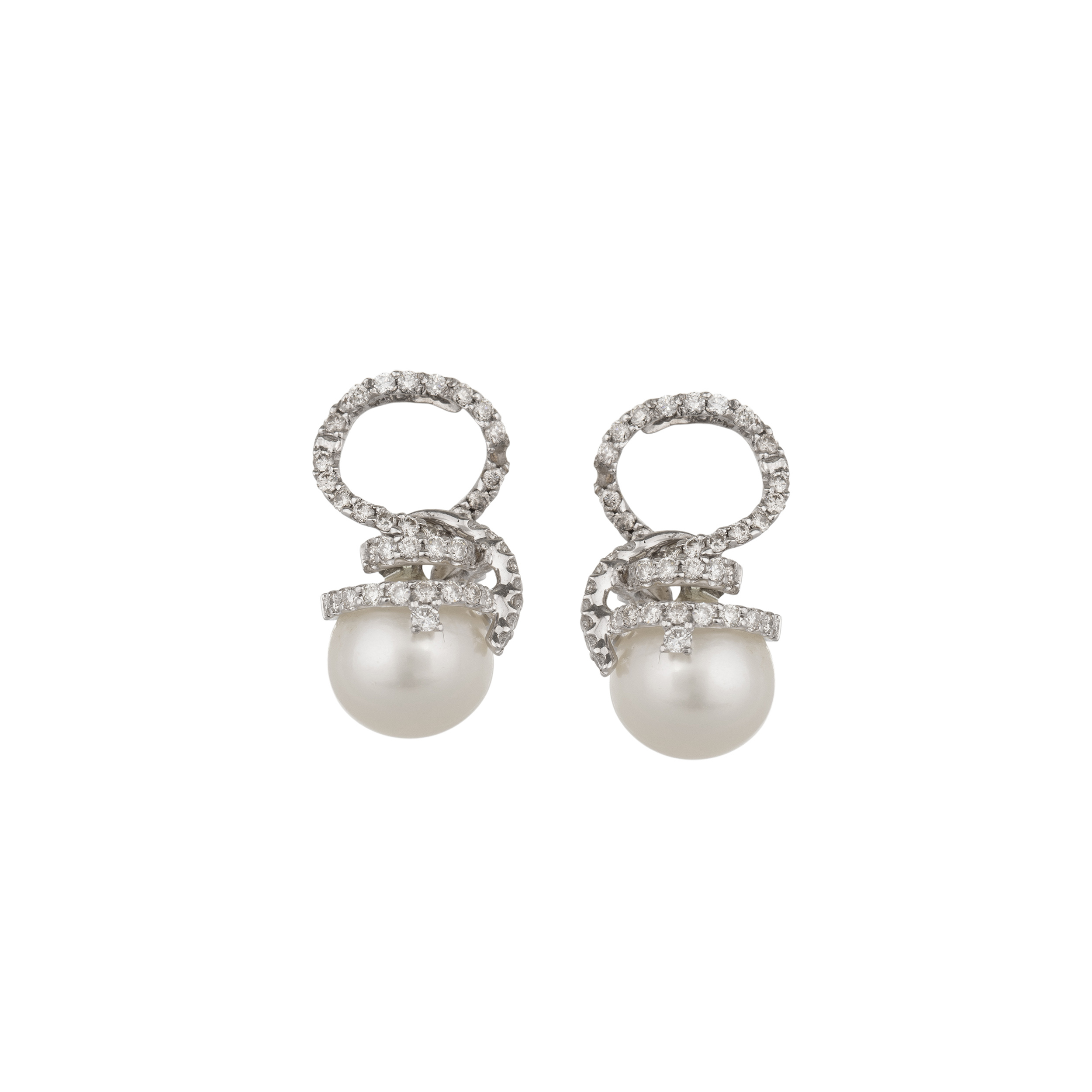 Brinco de ouro branco com pérolas (11mm), 2,85ct de diamantes I/VS-SI e 11,3g. Medida 4cm.