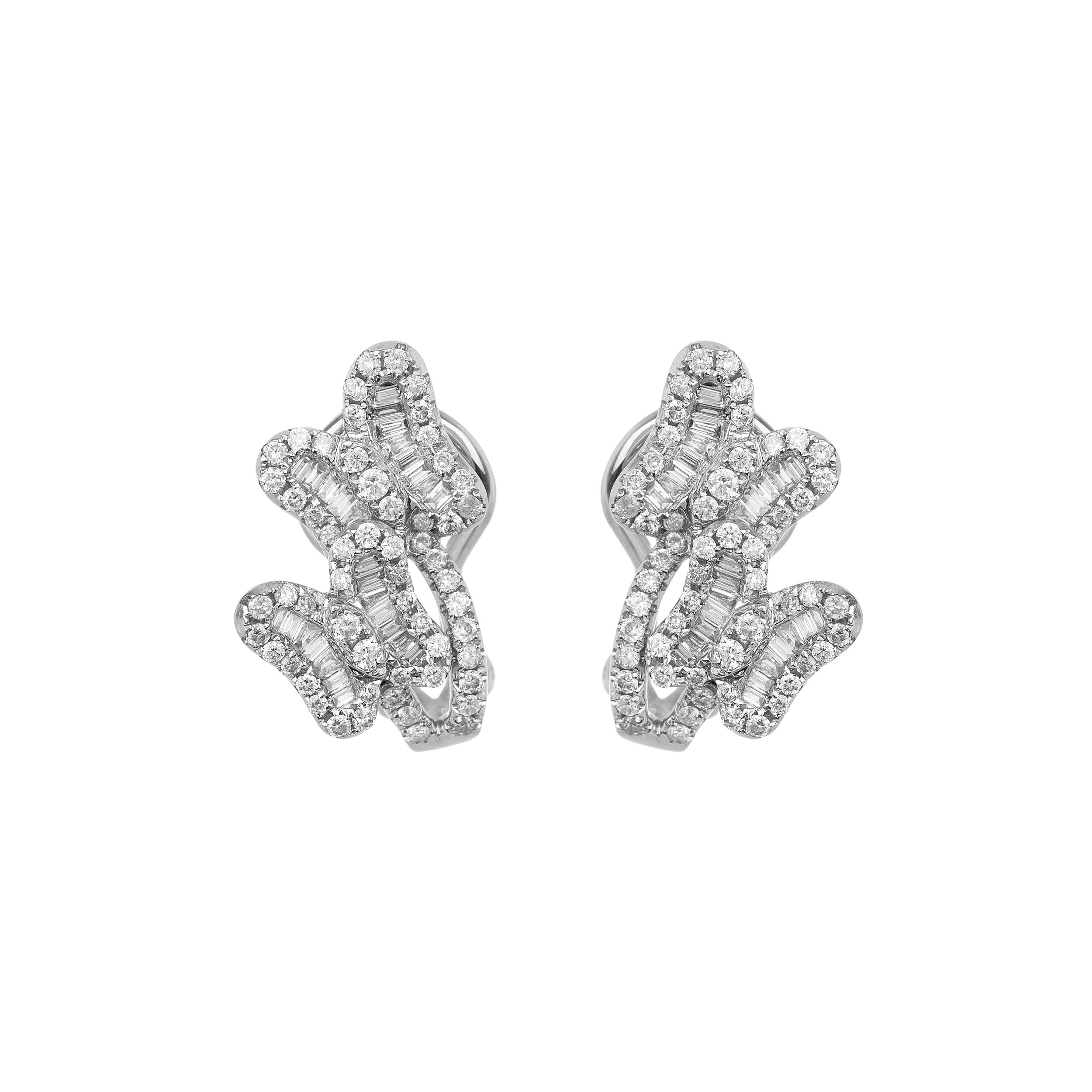 Brinco de ouro branco com 1,30ct de diamantes e 8,1g. Medida 2,5cm.