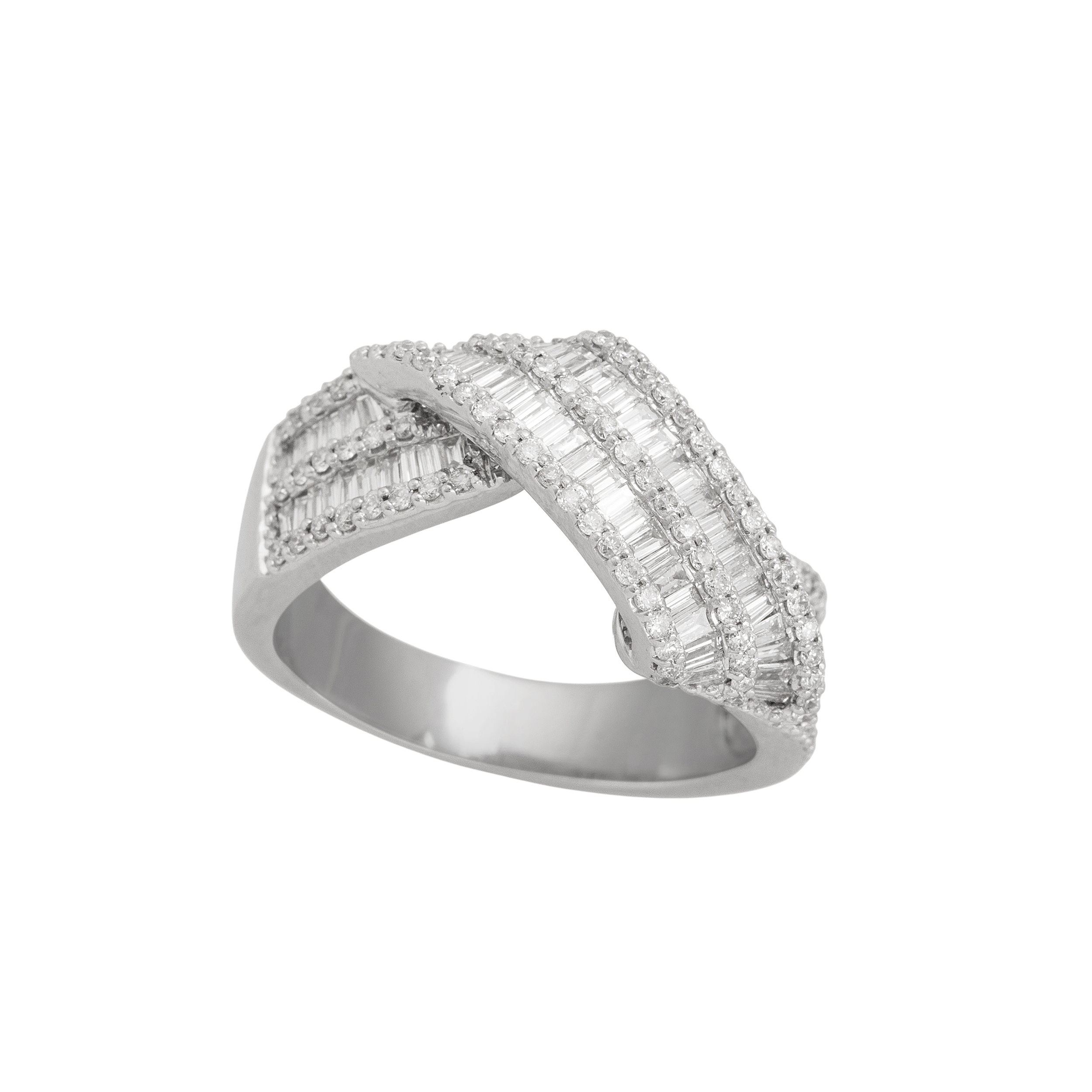 Anel de ouro branco com 2,56ct de diamantes e 8,0g. Medida 20.