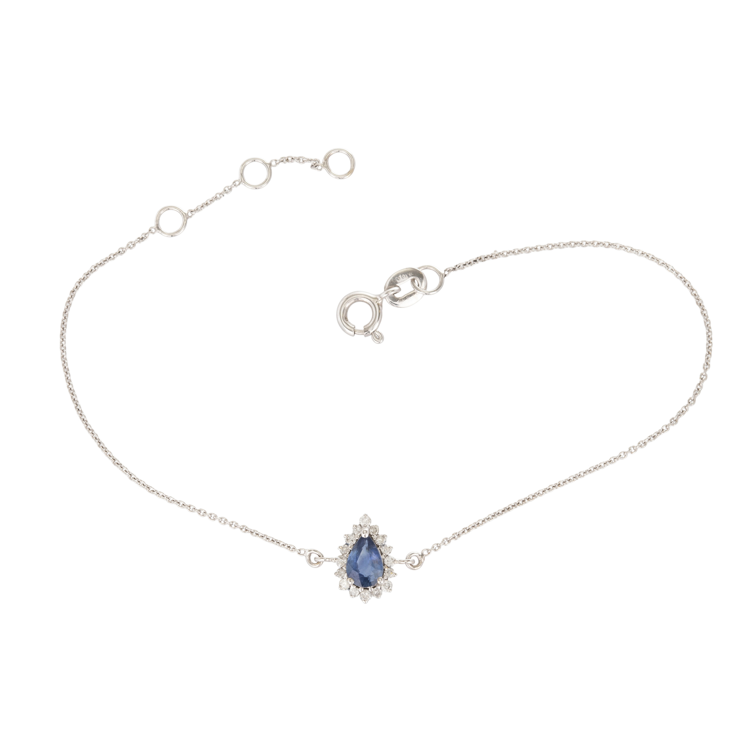 Pulseira de ouro branco com 0,35ct de safira e 0,10ct de brilhantes. Medida 18cm.
