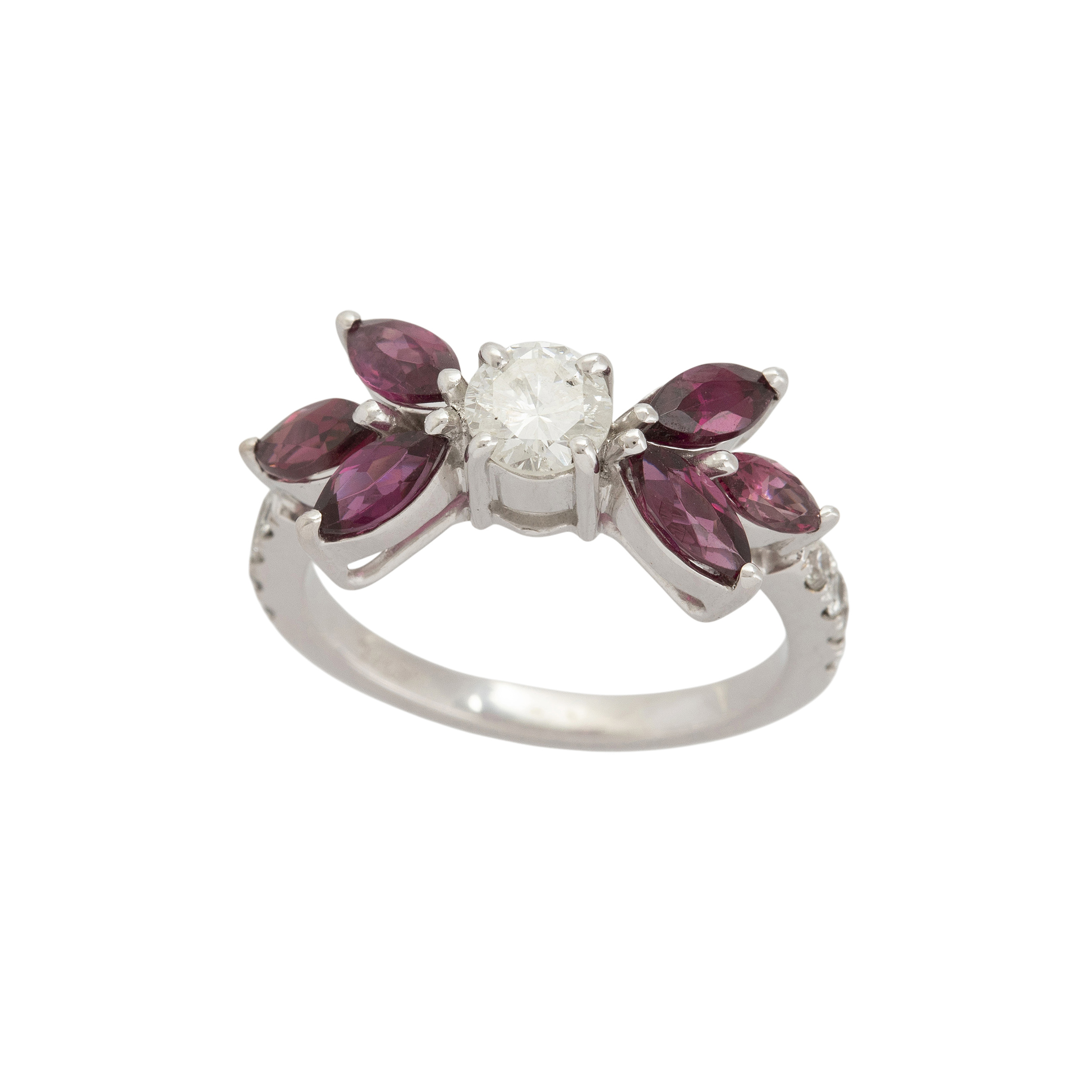 SAYEGH SIGNATURE. Anel de ouro branco com 1,20ct de turmalinas rosa e 0,71ct de brilhante. Medida 16.