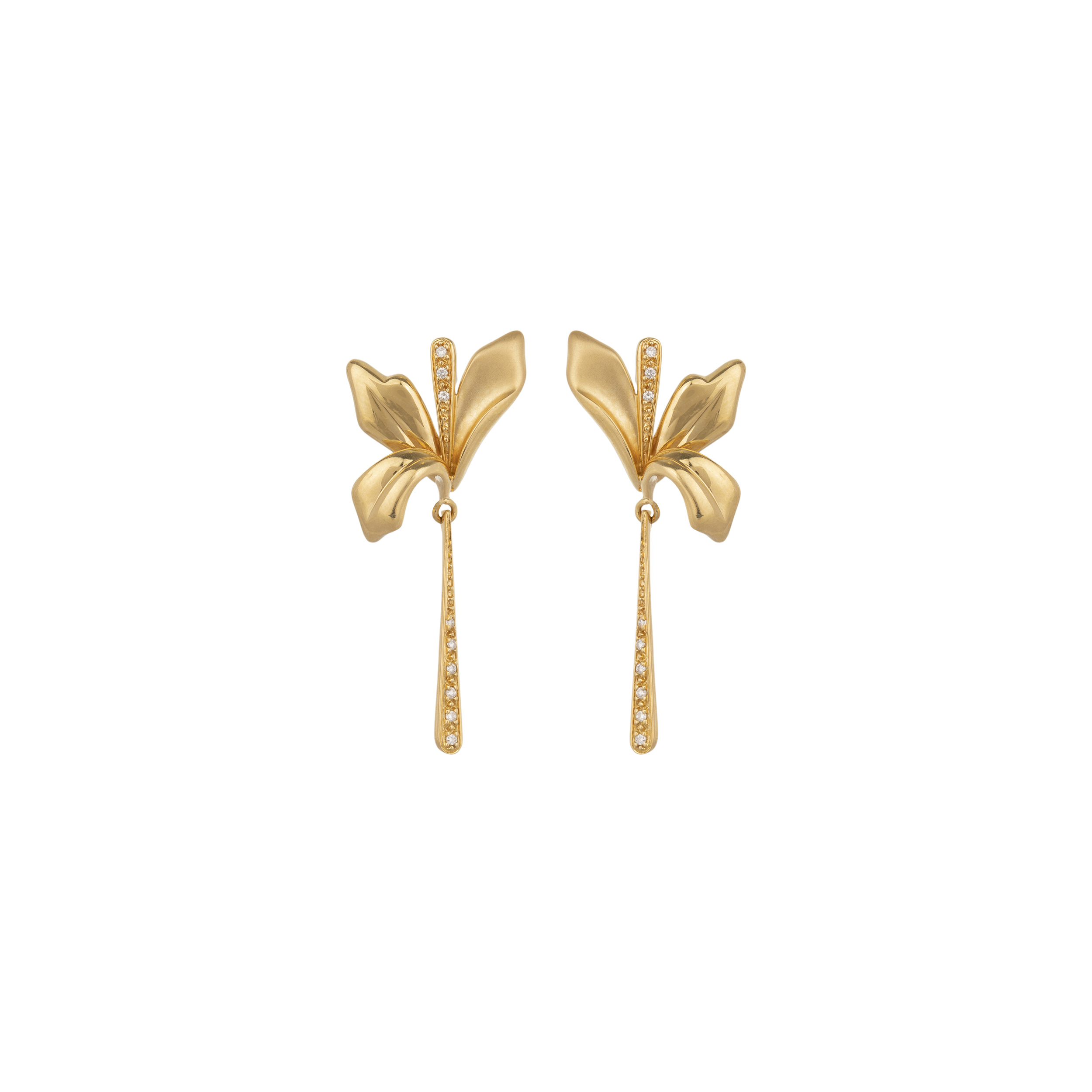 Brinco de ouro amarelo com 0,10ct de brilhantes e 9,1g. Medida 4,5cm.
