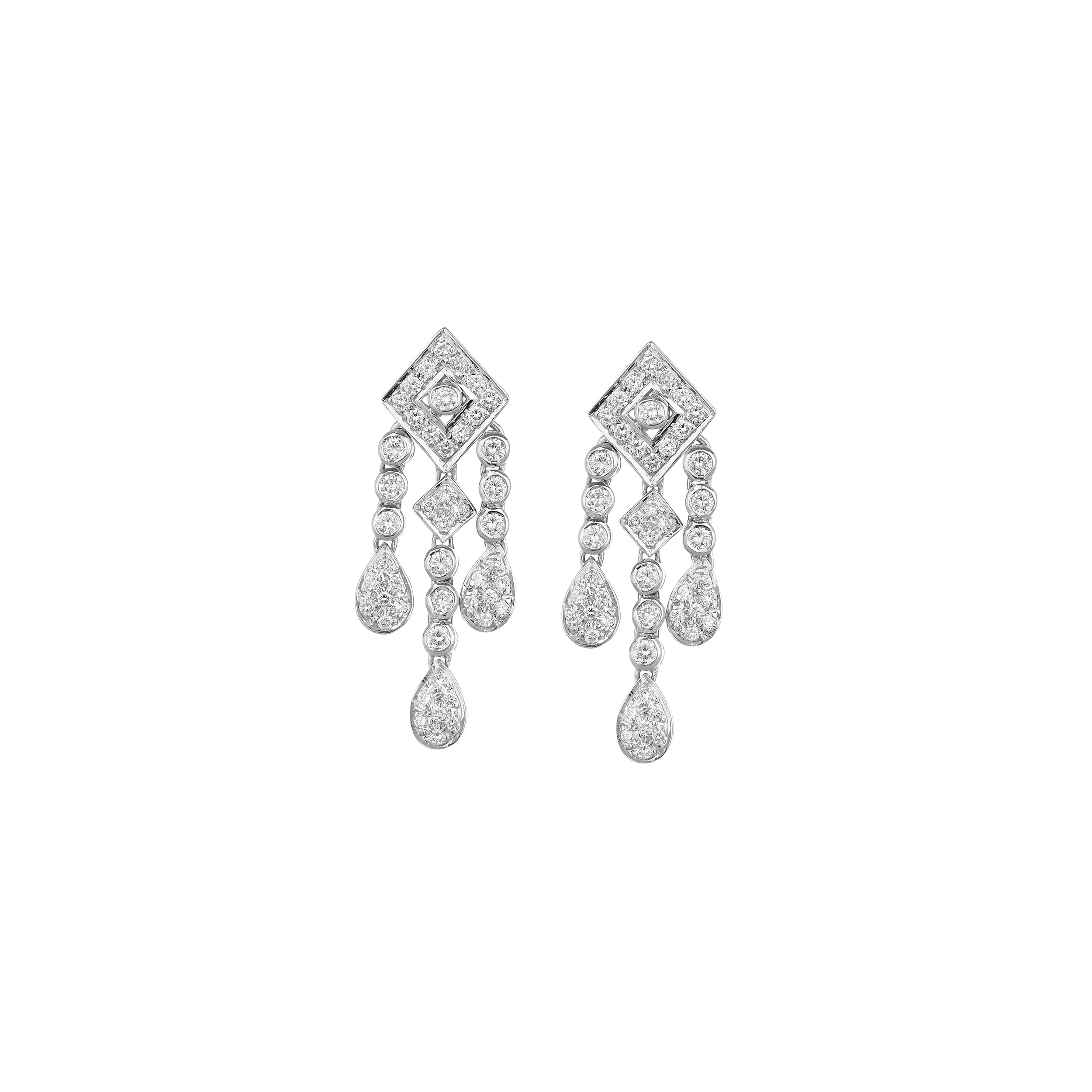 Brinco de ouro branco com 1,10ct de brilhantes e 8,7g. Medida 3,2cm.