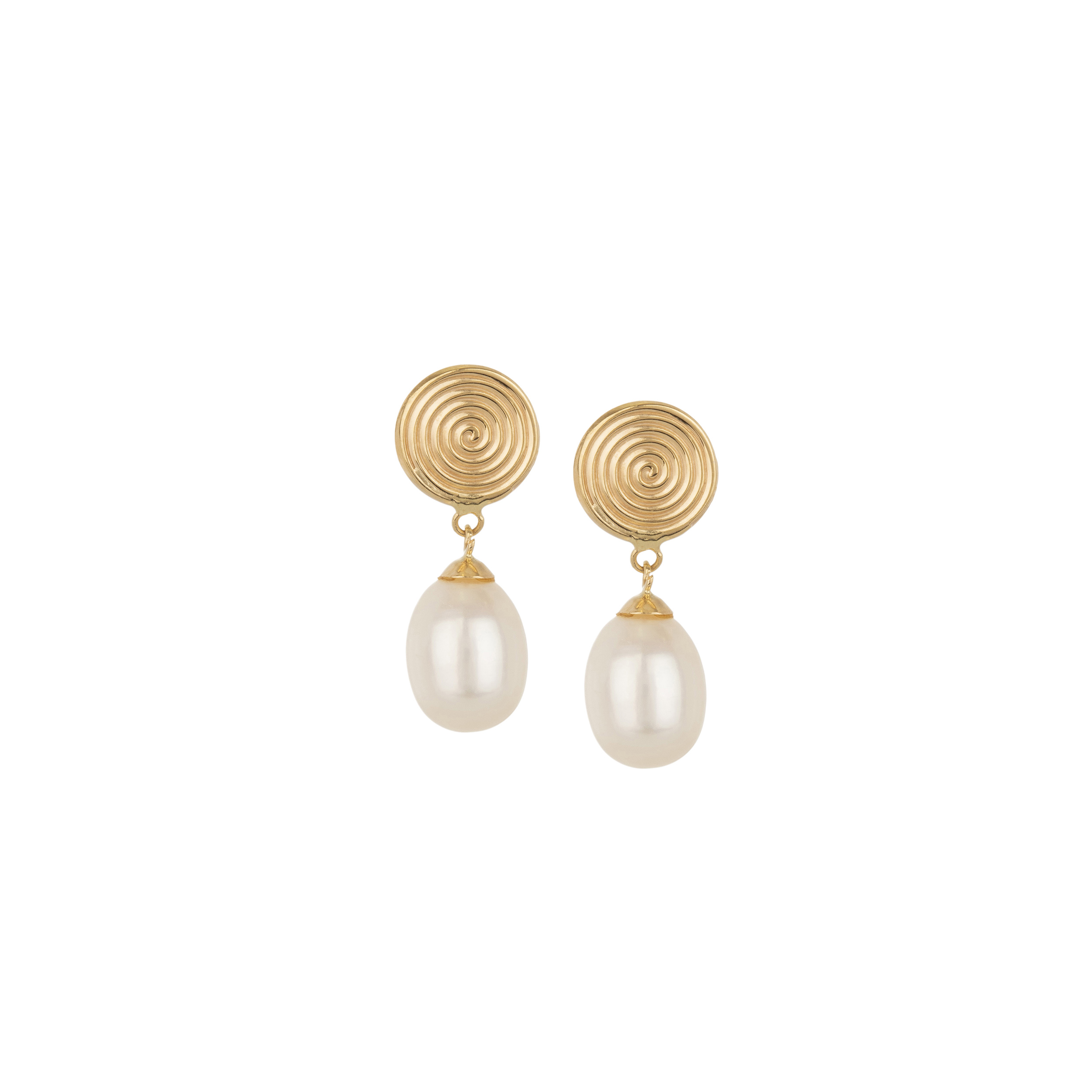 Brinco de ouro amarelo com pérolas (7,2mm). Medida 2,2cm.