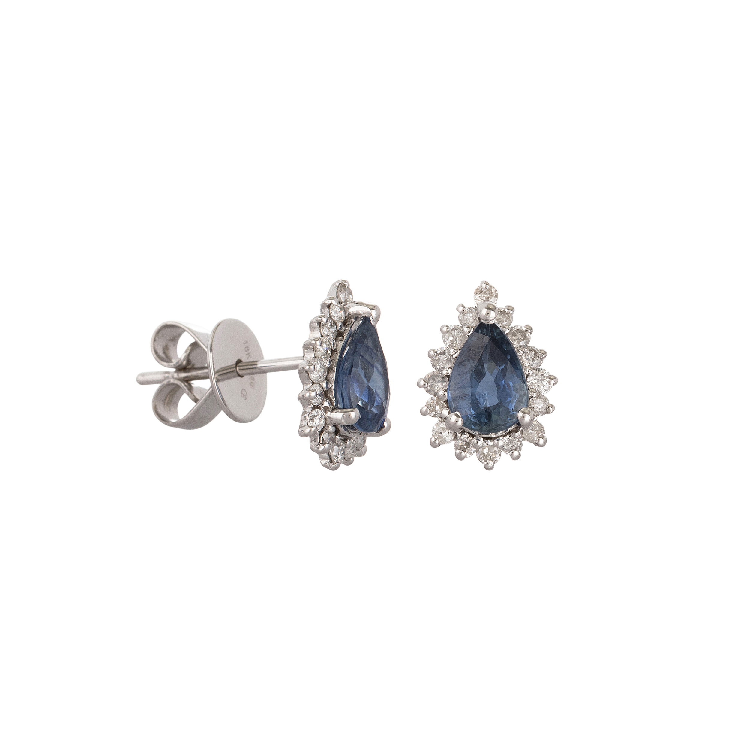 Brinco de ouro branco com 0,74ct de safiras e 0,16ct de brilhantes. Medida 1cm.