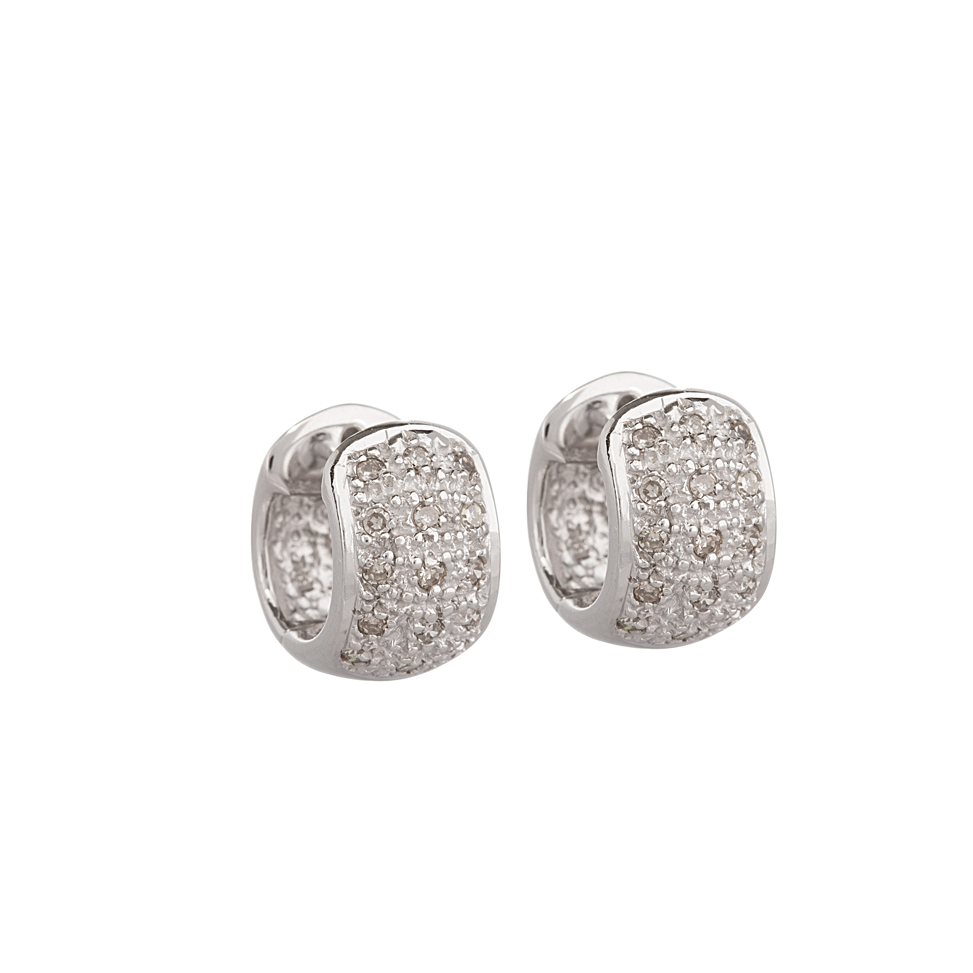 Brinco de ouro branco com 0,20ct de brilhantes. Medida 1,1cm.