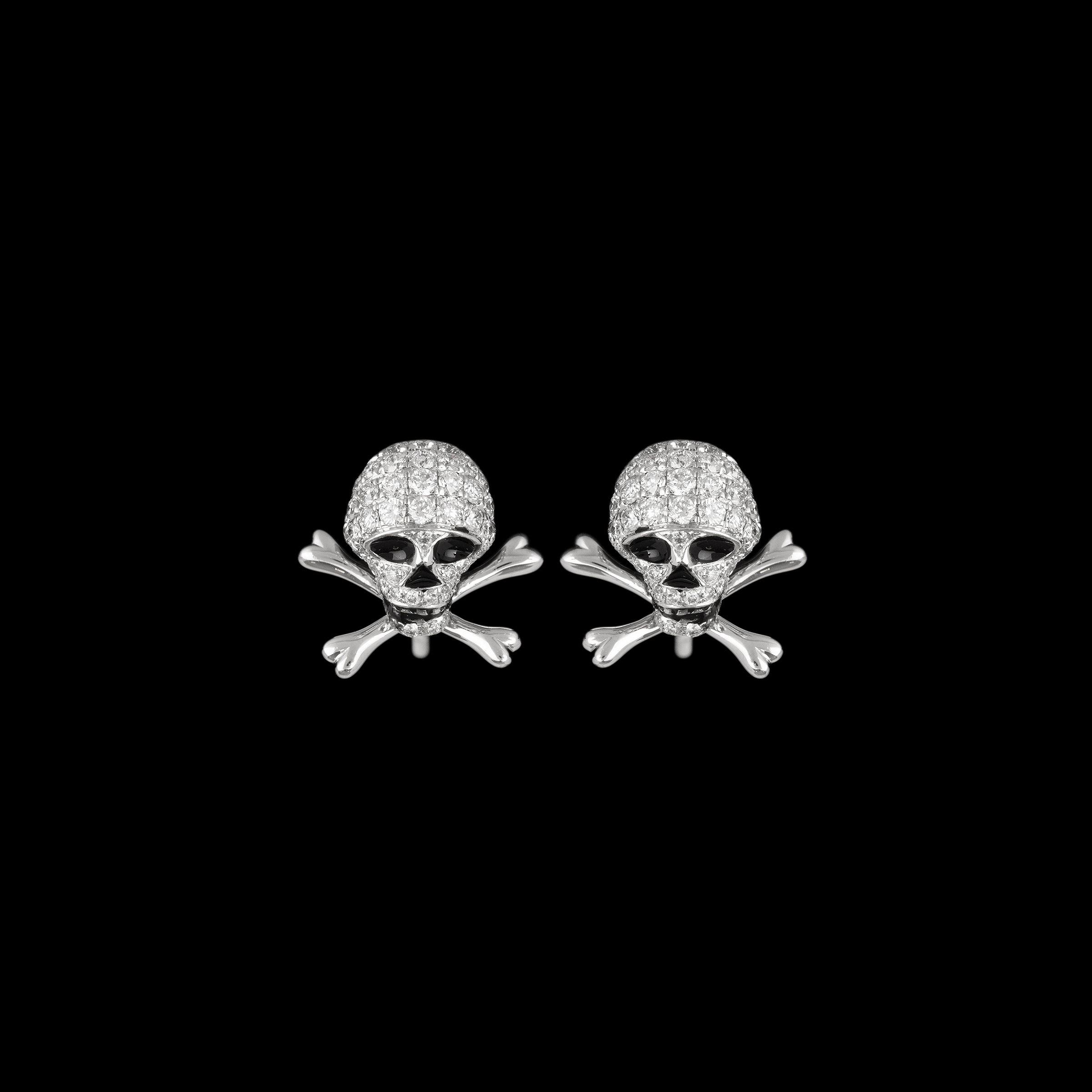 Brinco de ouro branco com ródio negro e 0,60ct de brilhantes. Medida 1cm.