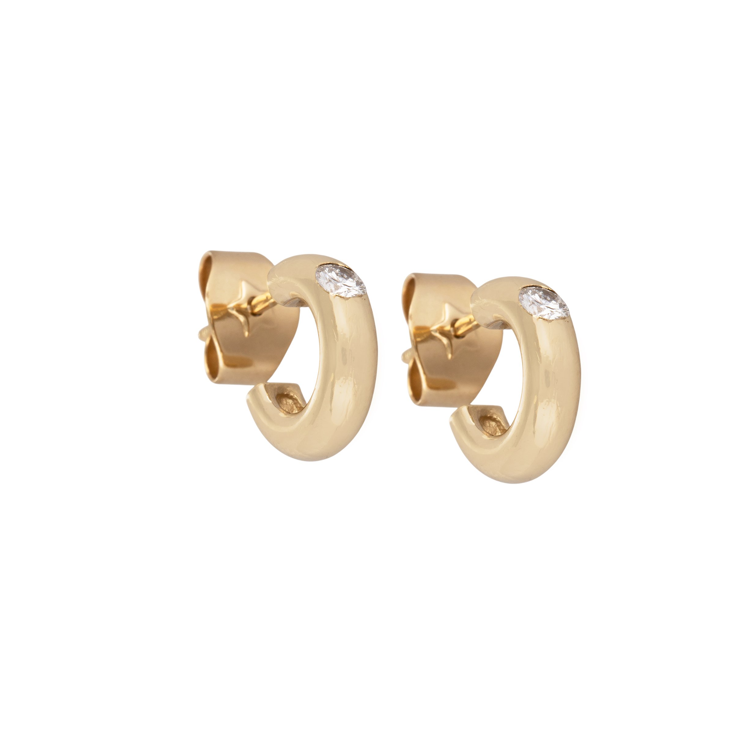 H. STERN. Brinco de ouro amarelo com 0,15ct de brilhantes. Medida 1cm.