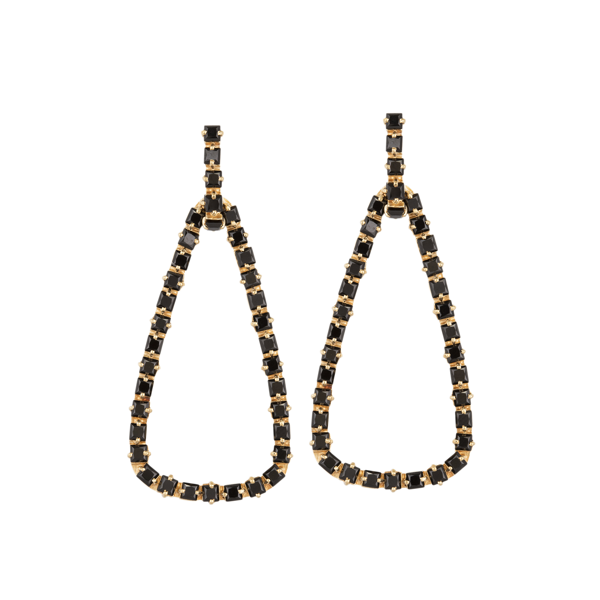CARLA AMORIM. Brinco de ouro amarelo com onix e 19,9g. Medida 6,5cm.