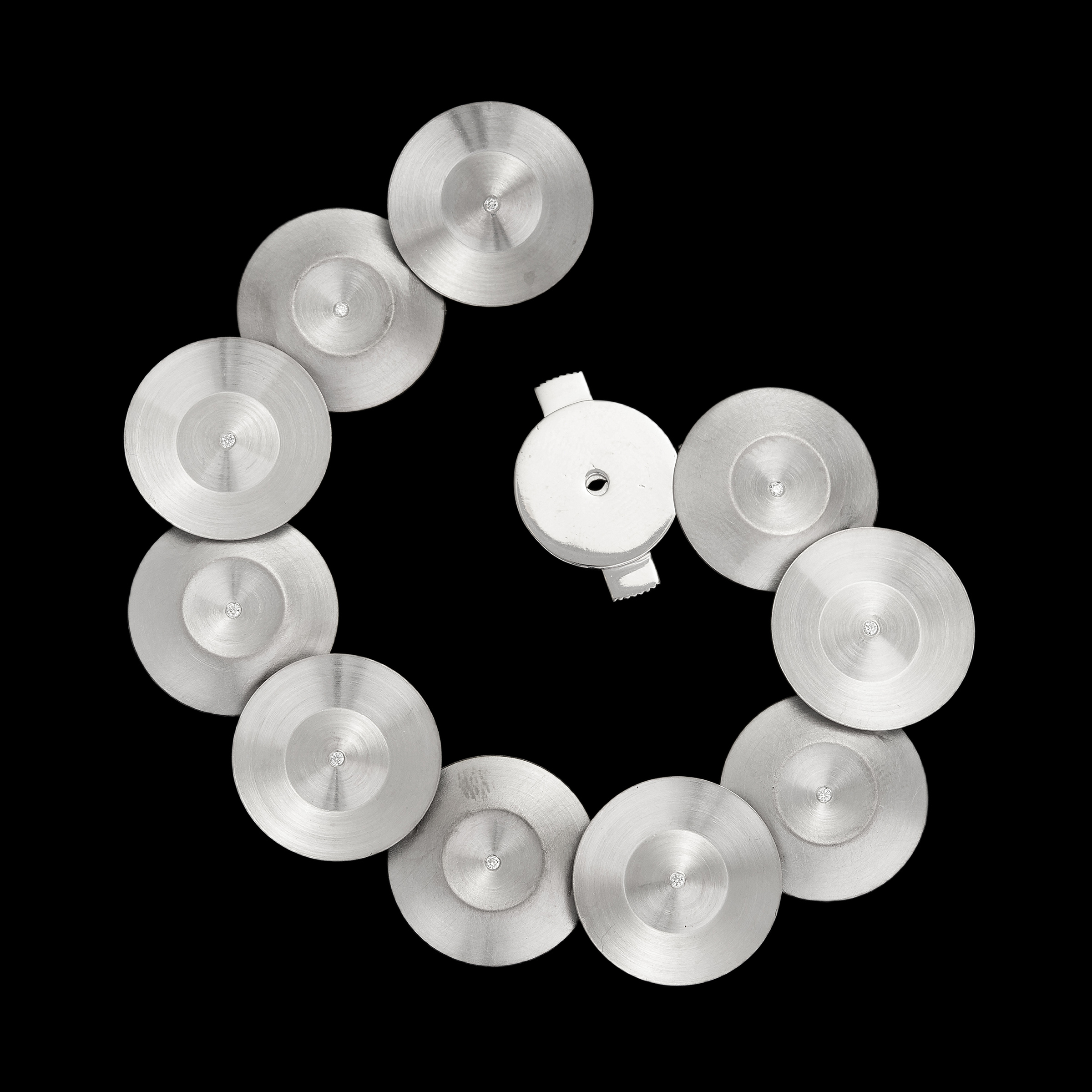 ANTONIO BERNARDO. Pulseira de ouro branco com 0,10ct de brilhantes e 34,5g. Medida 19,5cm.
