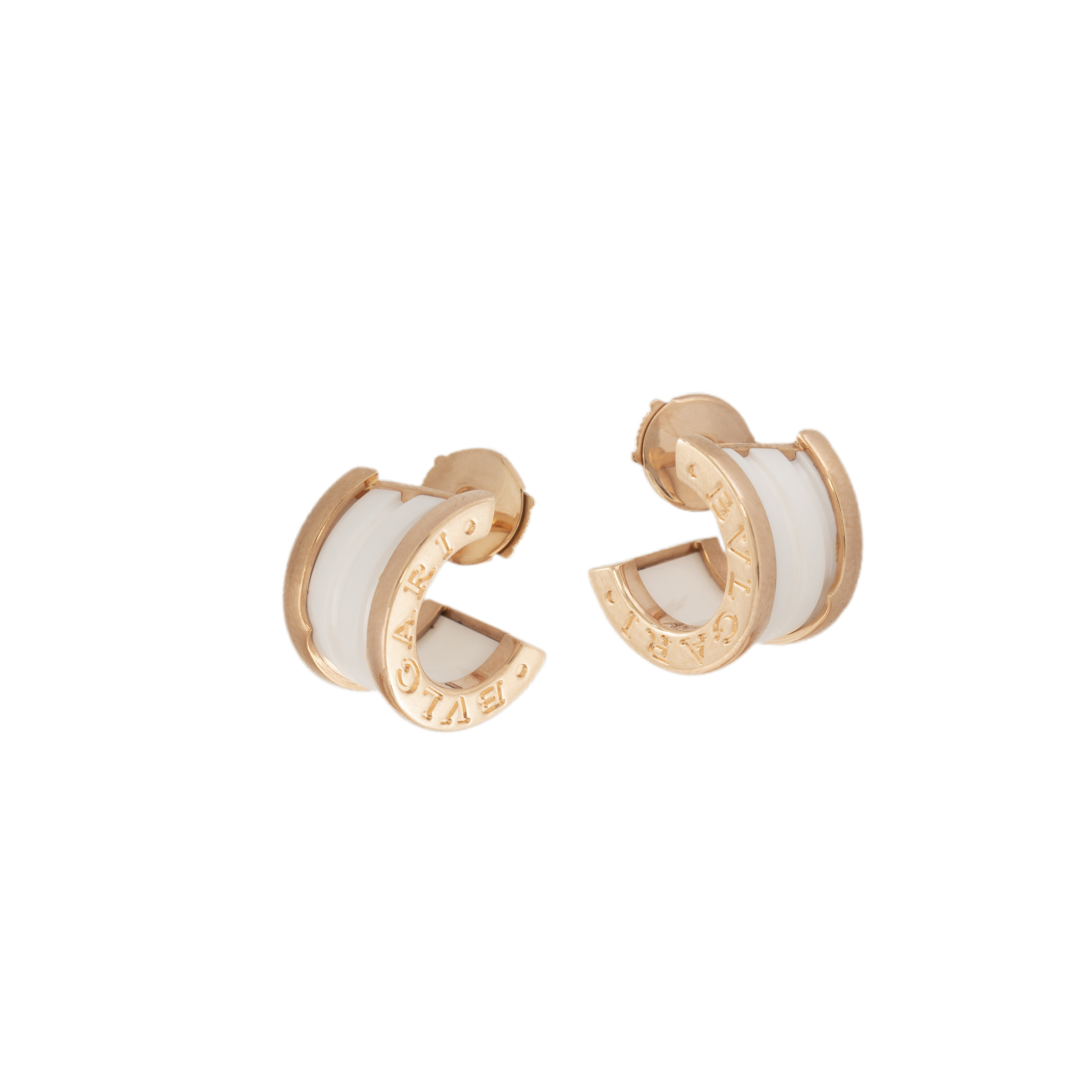 BVLGARI. Brinco B.Zero1 de ouro rosé com cerâmica e 7,4g. Medida 1,2cm.