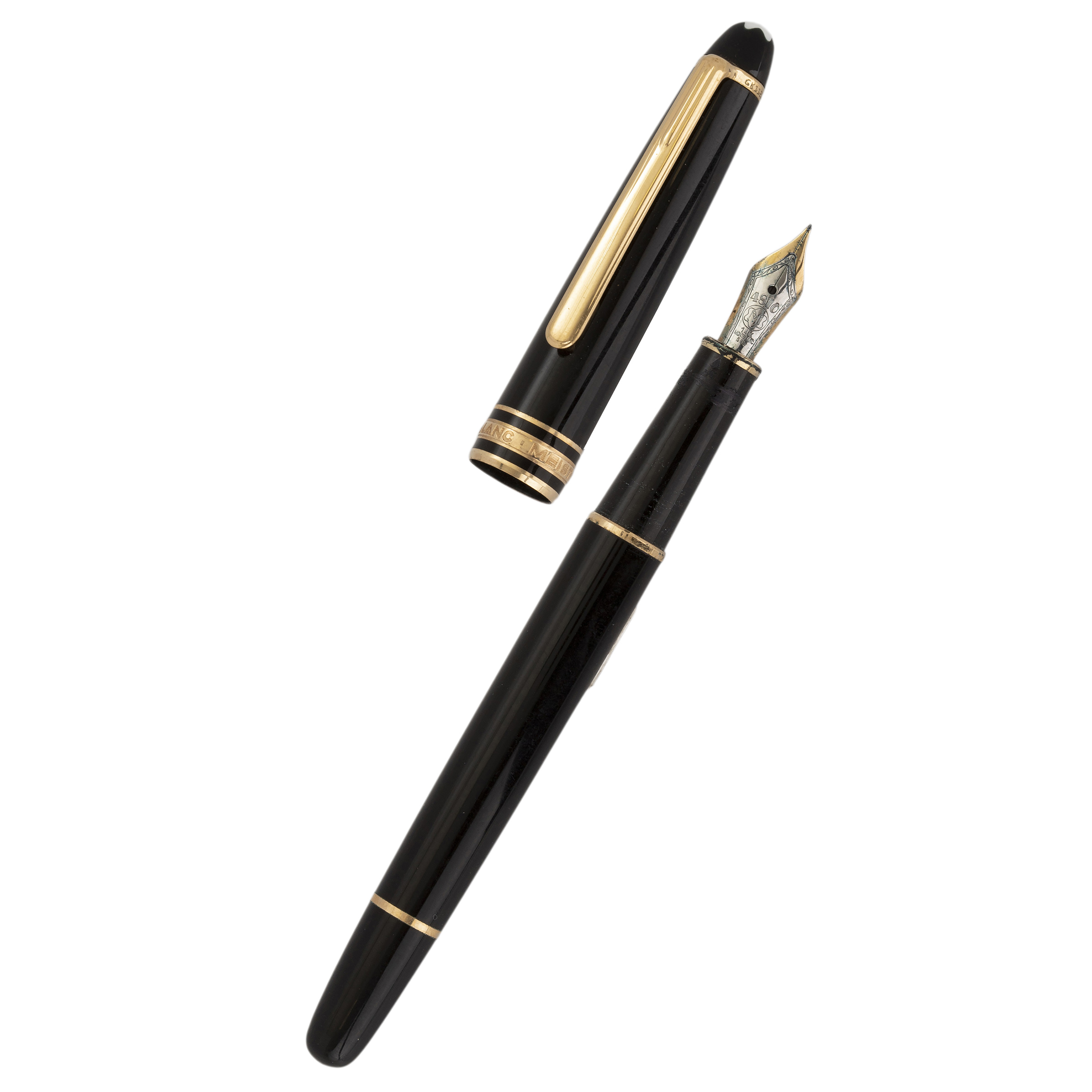 MONTBLANC. Caneta Meisterstuck tinteiro com pena em ouro 14k com resina preciosa e detalhes revestidos em ouro amarelo. Com estojo original. Medida 13,1cm.