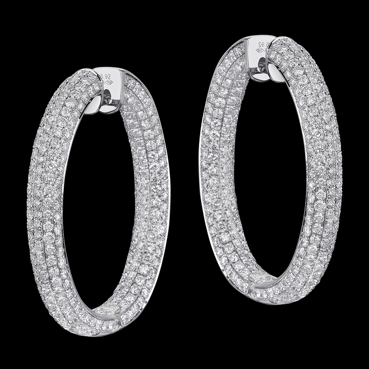 Brinco de ouro branco com 11,84ct de brilhantes I/I1 e 25,9g. Medida 4cm.