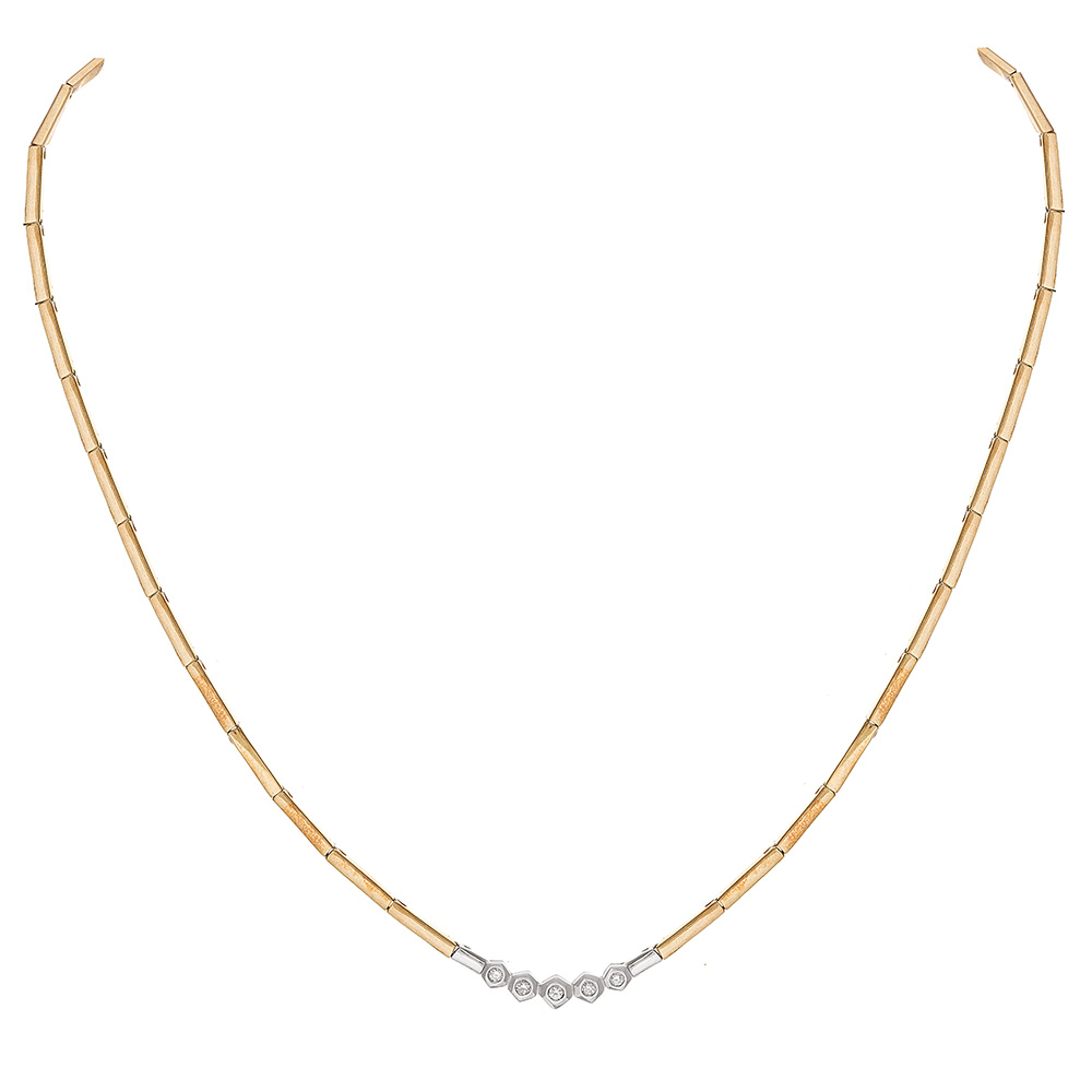 Gargantilha de ouro amarelo e branco com 0,12ct de brilhantes e 14,8g.