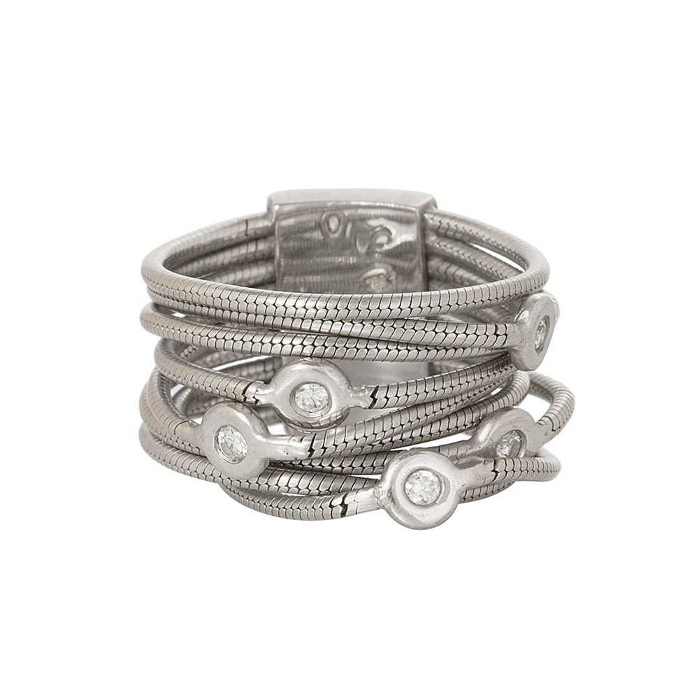 Anel de ouro branco com 0,10ct de brilhantes e 9,5g.