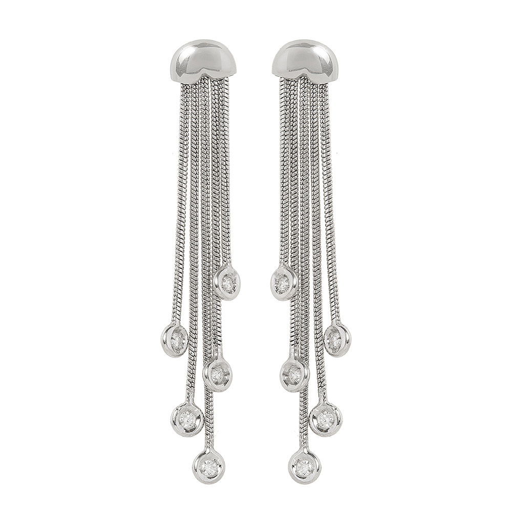 Brinco de ouro branco com 0,40ct de brilhantes e 8,1g. Medida 5cm.