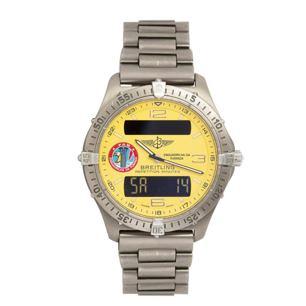 Aerospace Esquadrilha da Fumaça de titanium, chronógrafo, calendário, vidro de safira. Caixa 40mm. Pulseira 20cm.