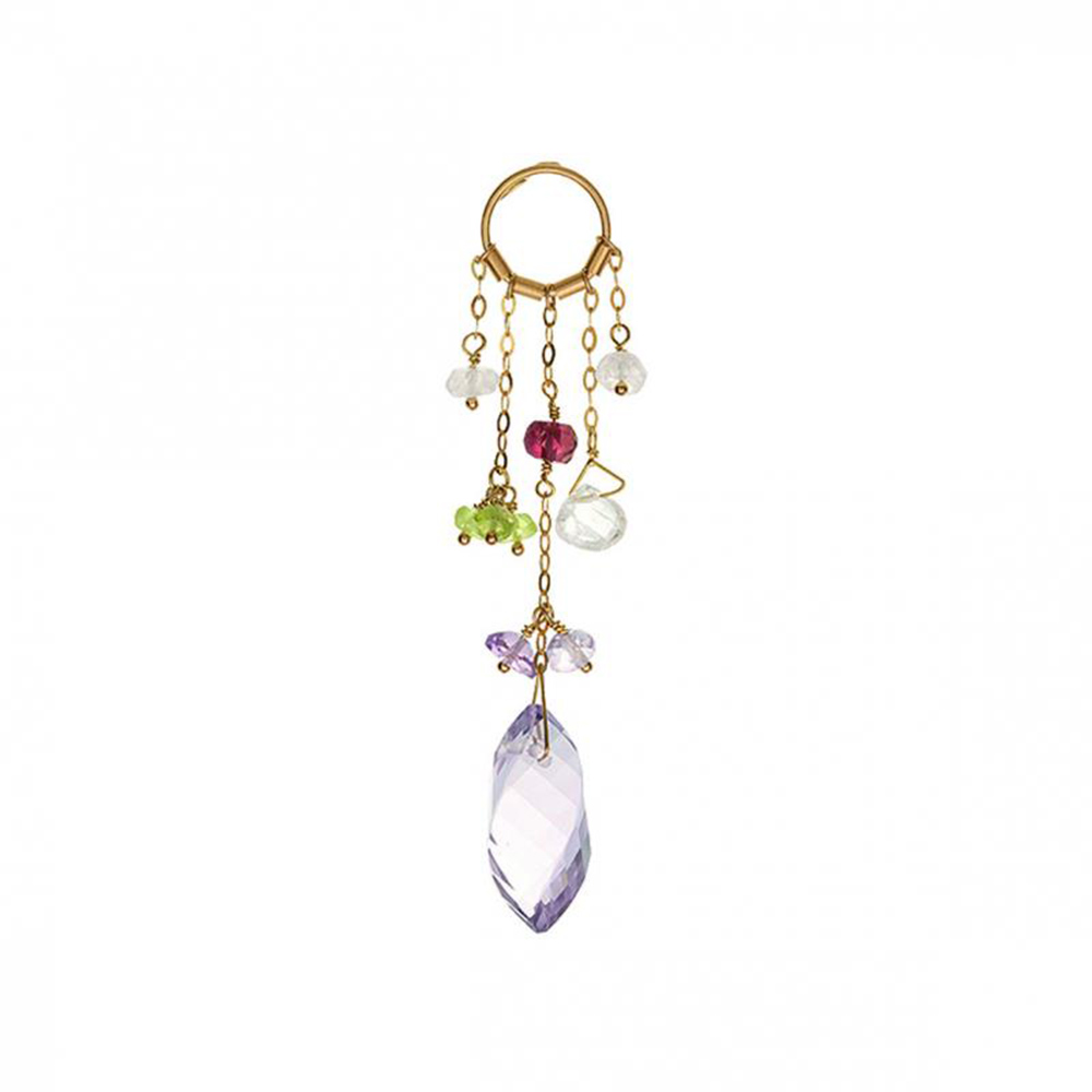 Pingente de ouro amarelo com ametistas, peridotos, turmalina rosa e pedra da lua.
