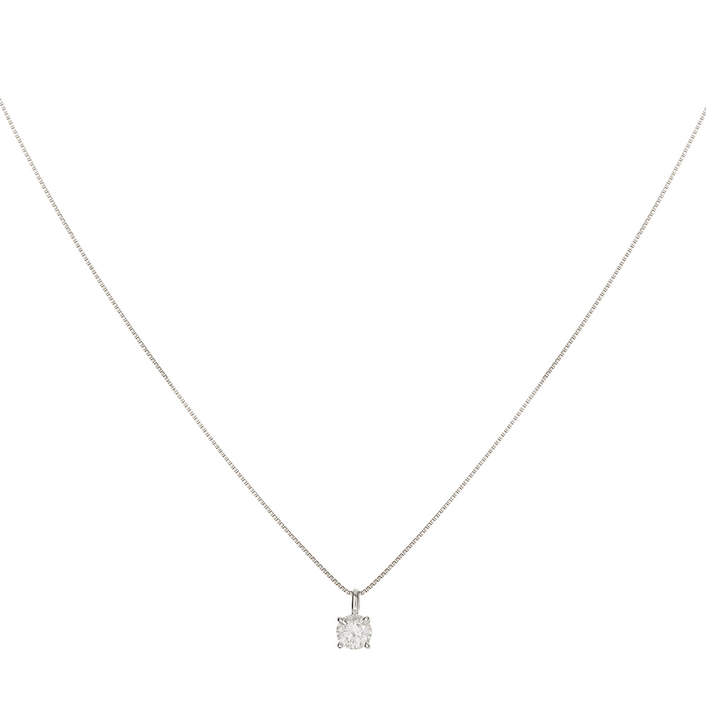 Corrente com pingente de ouro branco, 0,65ct de brilhante I/SI1. Medidas 0,6cm/40cm