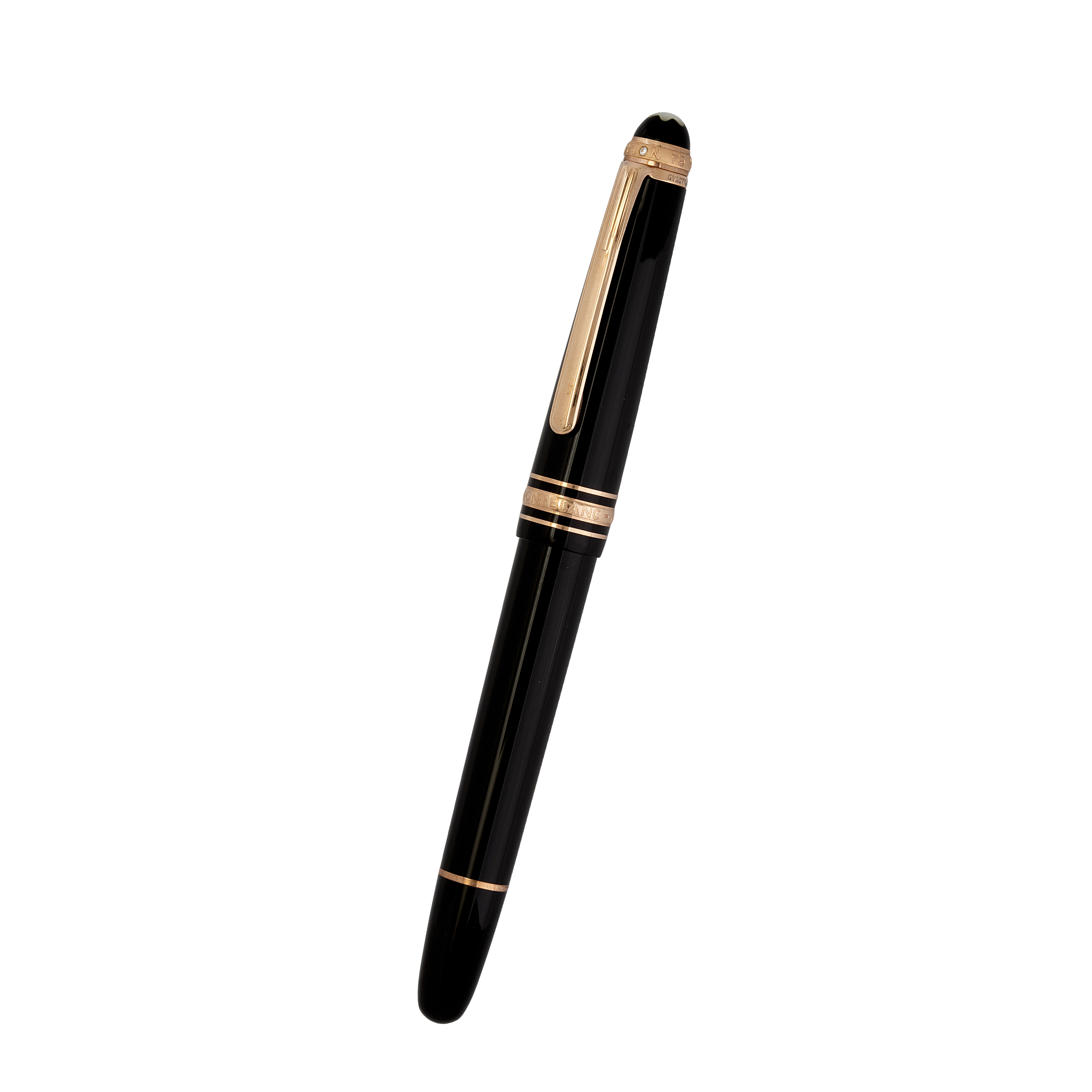MONTBLANC. Caneta Meisterstuck tinteiro comemorativa dos 75 anos da Montblanc com pena de ouro 18k, resina preciosa e detalhes revestidos a ouro. Medida 14cm. Com caixa e certifcado originais.