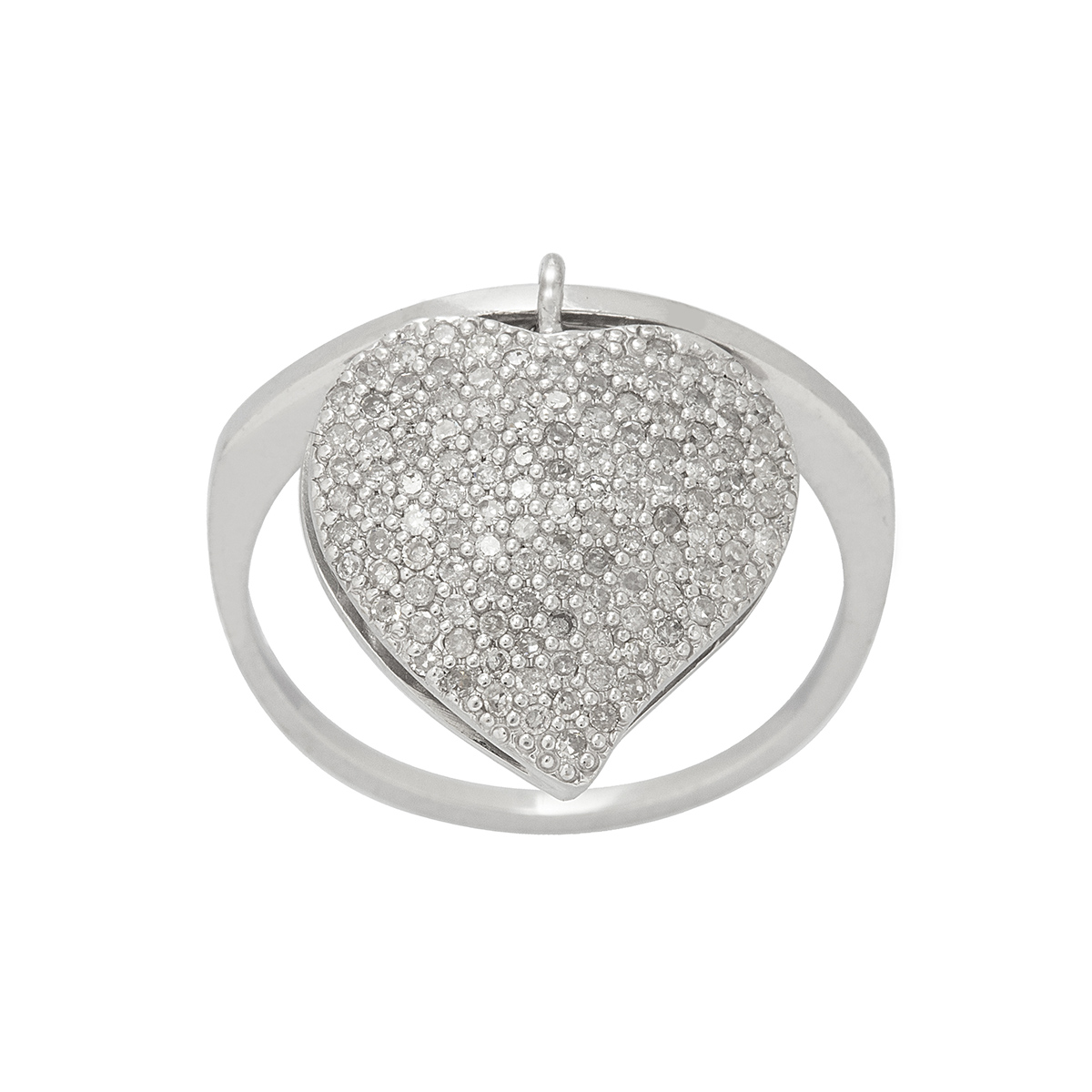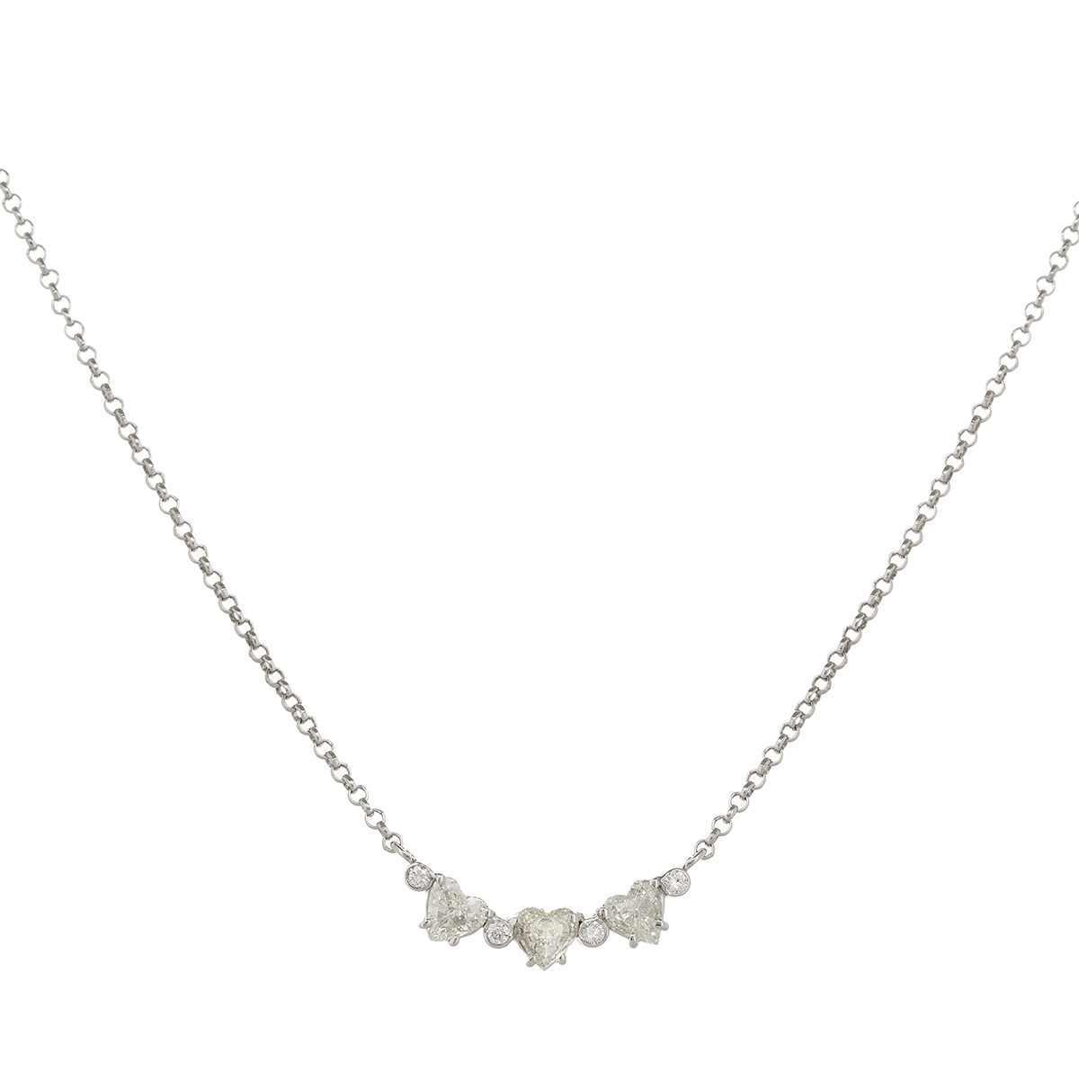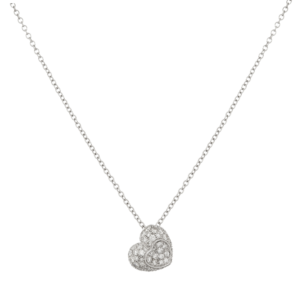 Corrente com pingente de ouro branco e 1,06ct de diamantes (sendo 0,94ct de lapidação coração K-SI/0,12ct de lapidação brilhante). Medidas 0,5x2,2cm/41cm.