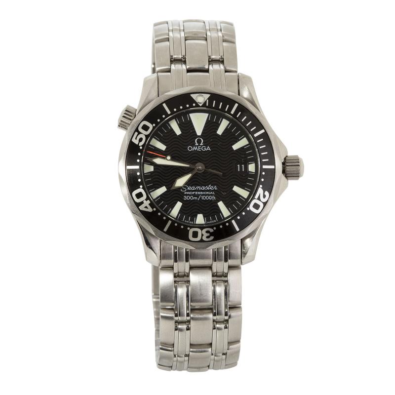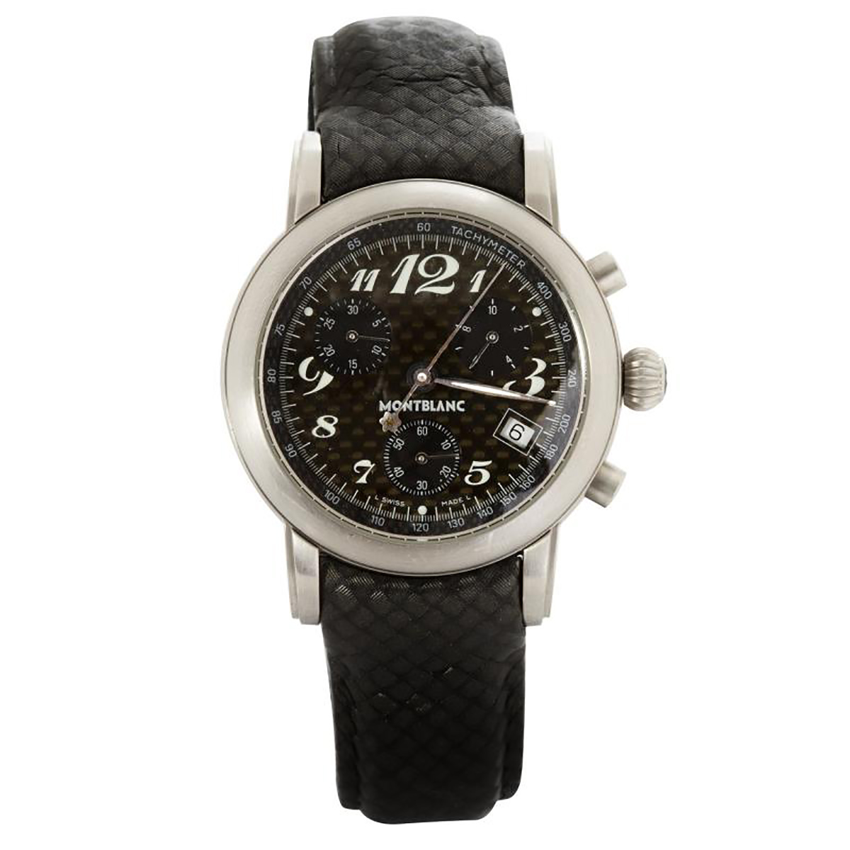 MONTBLANC. Relógio Meisterstuck Chronograph de aço com movimento a quartz, cronógrafo, calendário, vidro de safira, anos 2000. Caixa 36x43mm. Pulseira de couro 20cm.