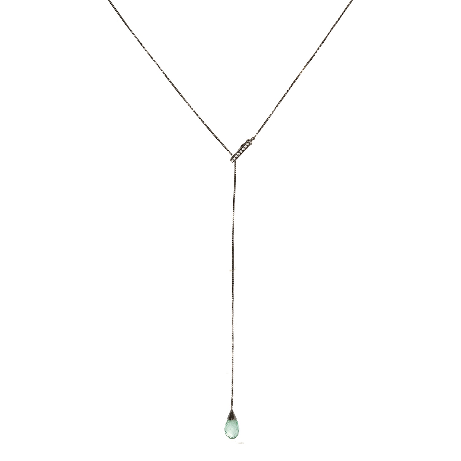 . Gargantilha de ouro branco com ródio negro, esmeralda e 0,05ct de brilhantes. Medida 63cm.