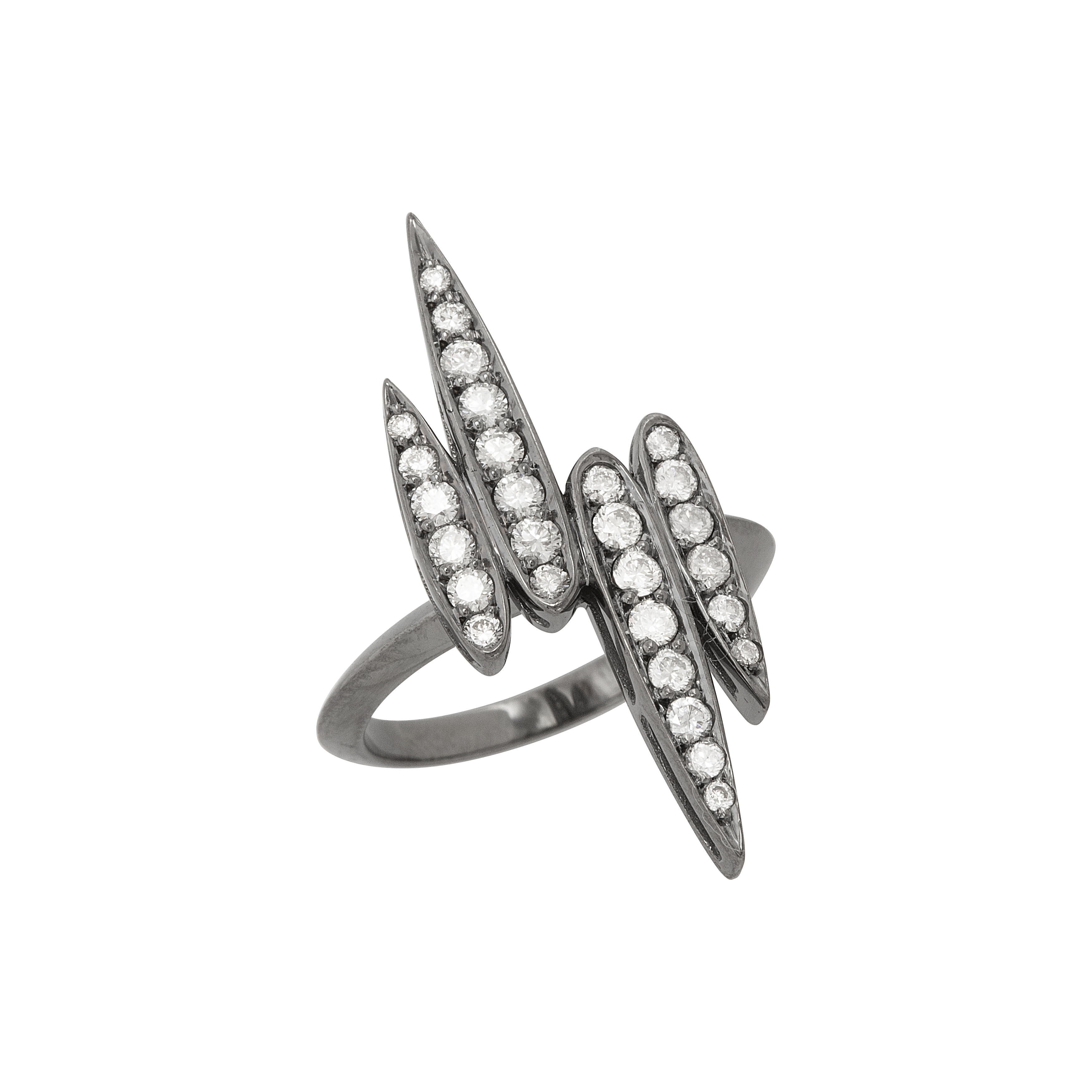 . Anel de ouro branco com ródio negro e 0,80ct de brilhantes. Medida 14.